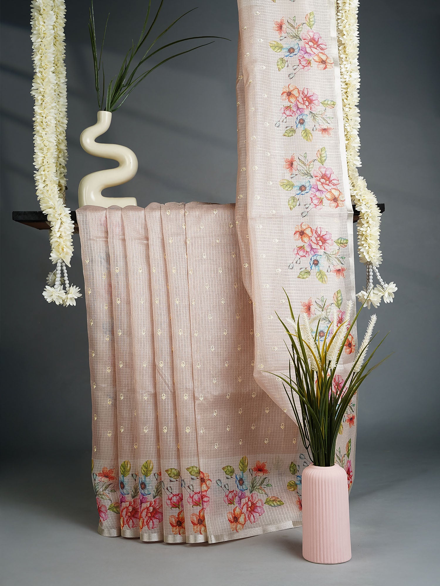 Kota Silk Sarees with Thread Work Butties and Floral Border- Beige