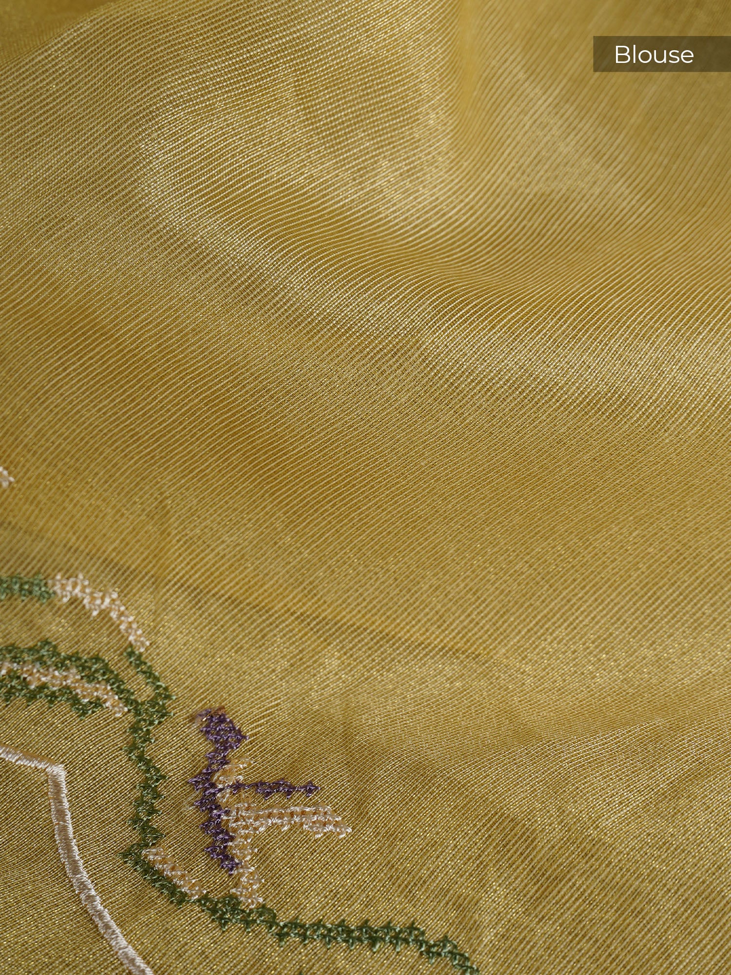 Linen Saree With Thread Work Butties and Scallop Border - Beige