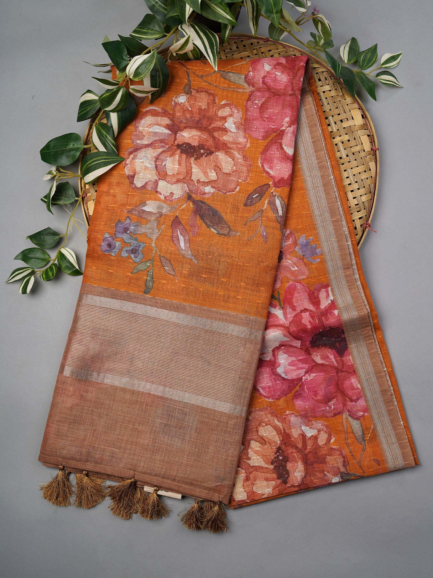 Mustard magic meets timeless elegance! This linen-silk blend saree features an enchanting floral pallu that dances with intricate details, while...