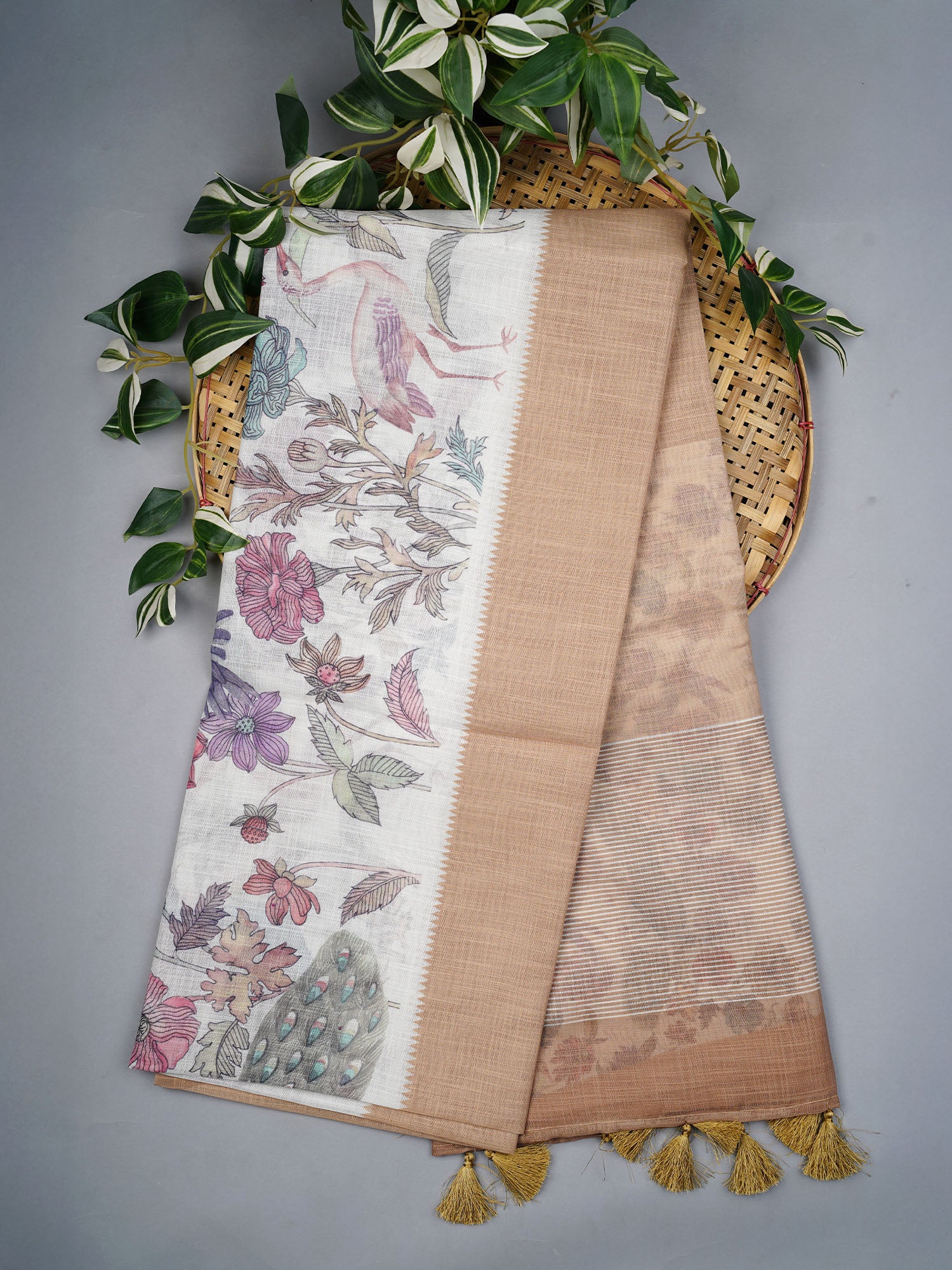 Elevate your everyday elegance with this stunning linen silk saree featuring a vibrant floral digital print in cheerful yellow. The perfect blend of comfort and sophistication, this medium-sized drape combines the breathable softness of linen with silk's luxurious sheen. The intricate floral design brings a fresh, contemporary twist to traditional saree styling, making it ideal for casual gatherings, festive occasions, or simply turning heads on your daily adventures. Versatile, comfortable, and absolutely gorgeous—your new go-to saree awaits!