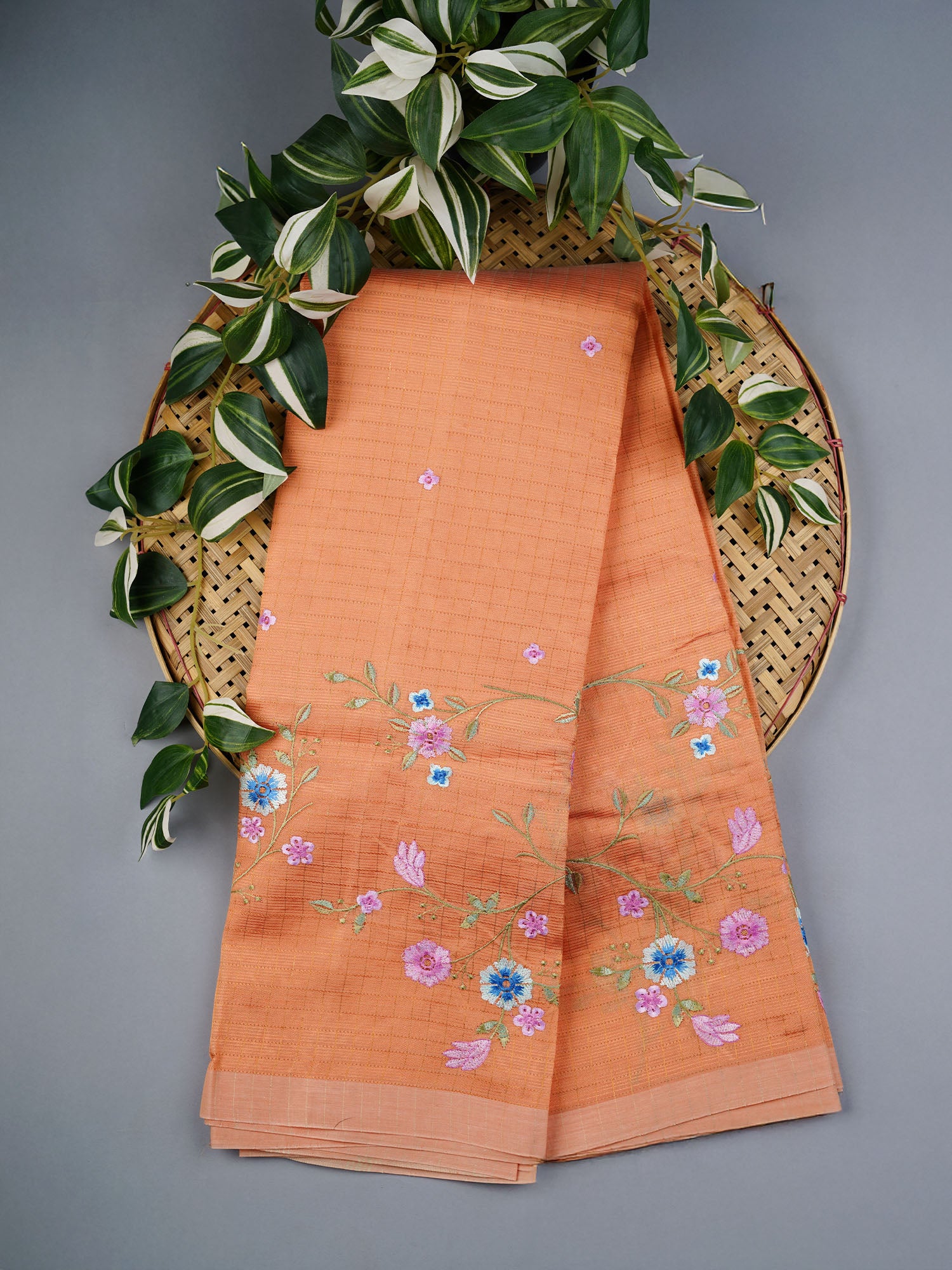 Managalagiri Silk Saree with Thread Embroidery Work with Border- Rust