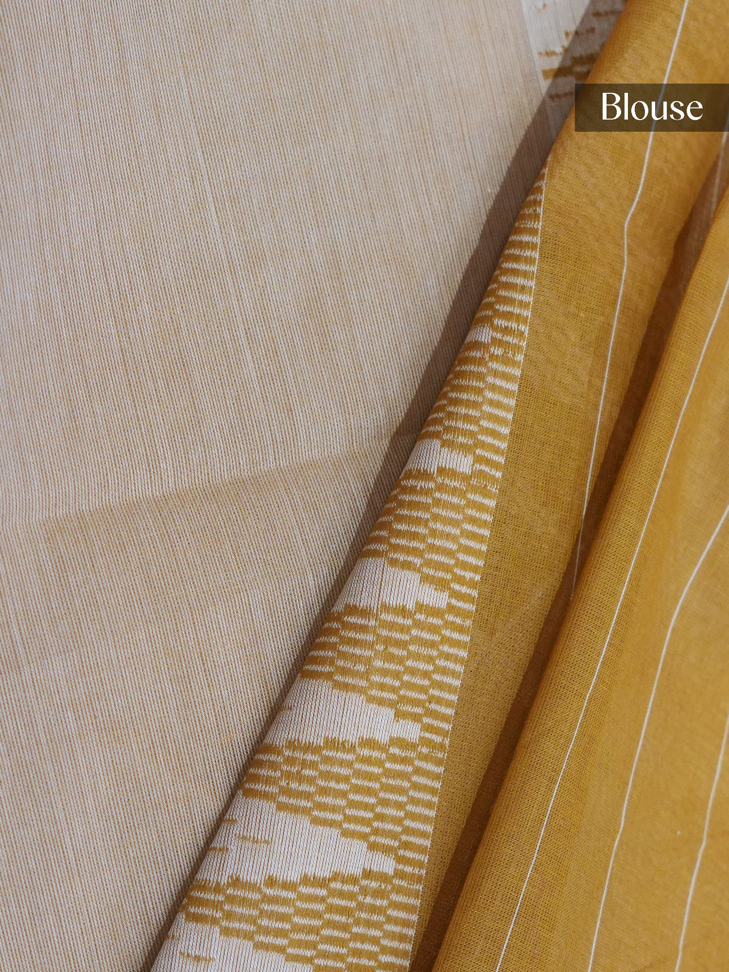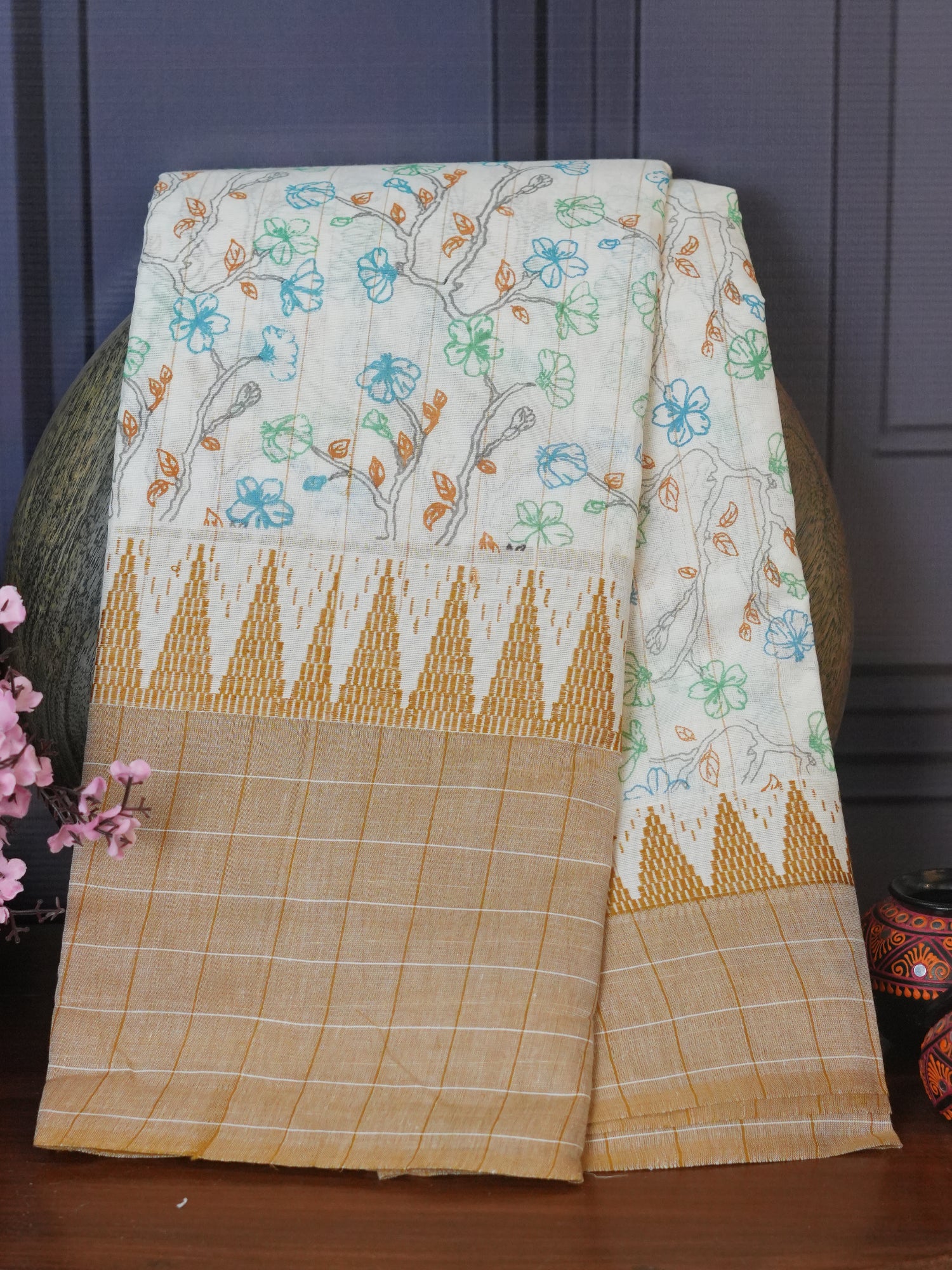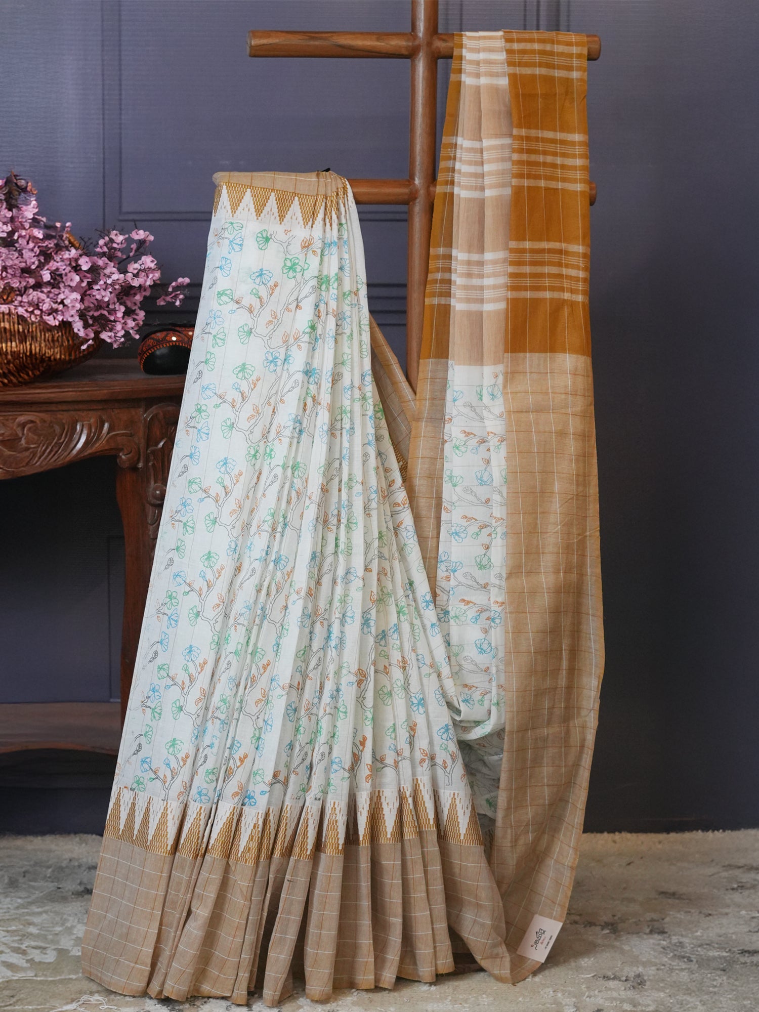 Mangalagiri cotton foral print contrast Border - Cream & Brown