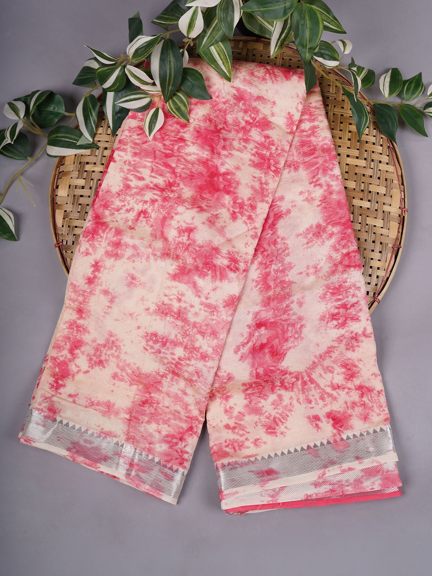 Experience the timeless elegance of the Mangalagiri Shibori Silk saree, featuring a delicate creme base enhanced by intricate pink Shibori patterns. This saree is beautifully complemented with a subtle silver border that adds a refined shimmer without overpowering the design. Crafted with traditional Mangalagiri weaving techniques, it offers both durability and a smooth, luxurious texture. Ideal for formal occasions, this saree balances classic artistry with sophisticated style, making it a distinguished choice for connoisseurs of fine Indian textiles.
