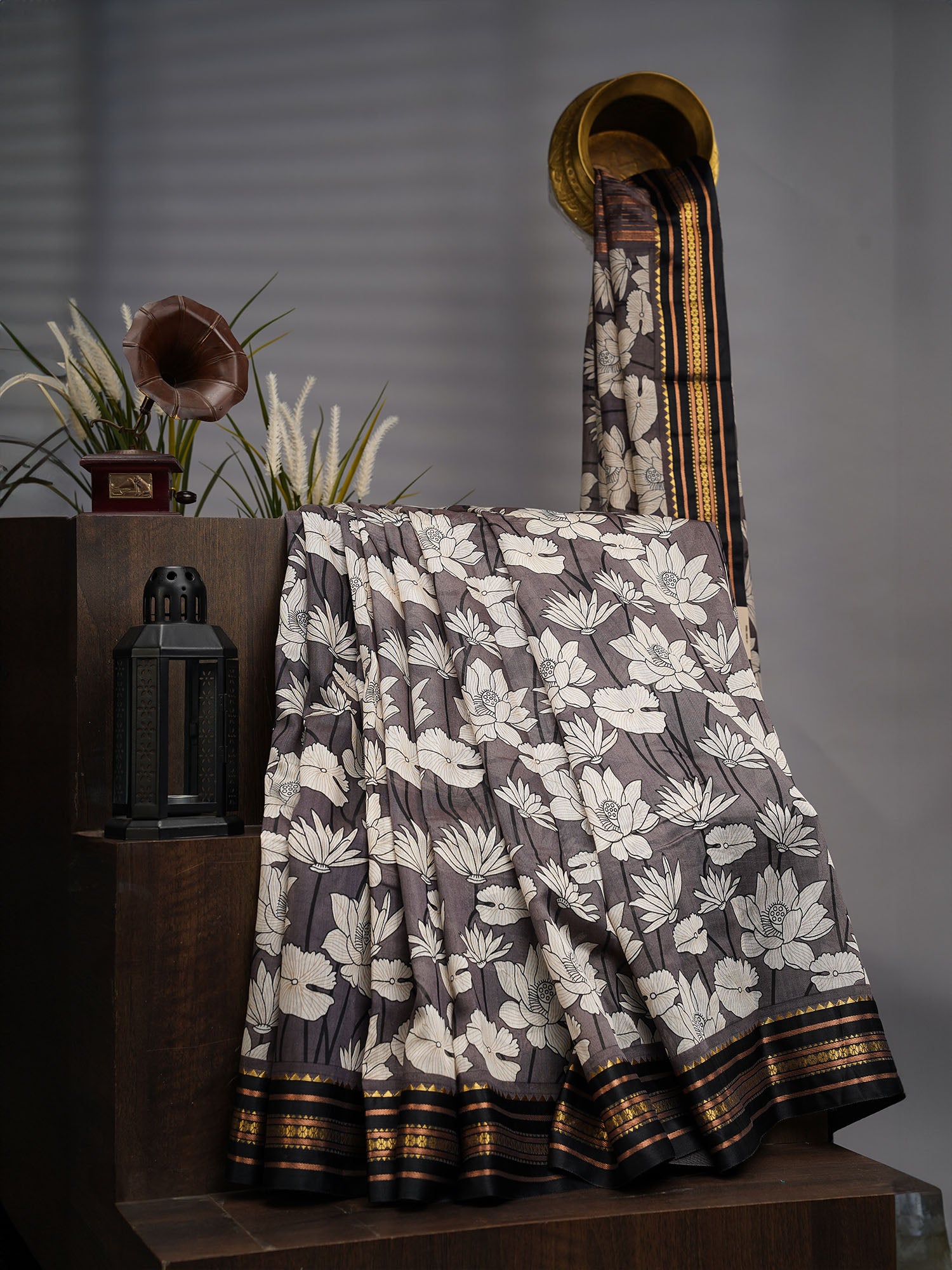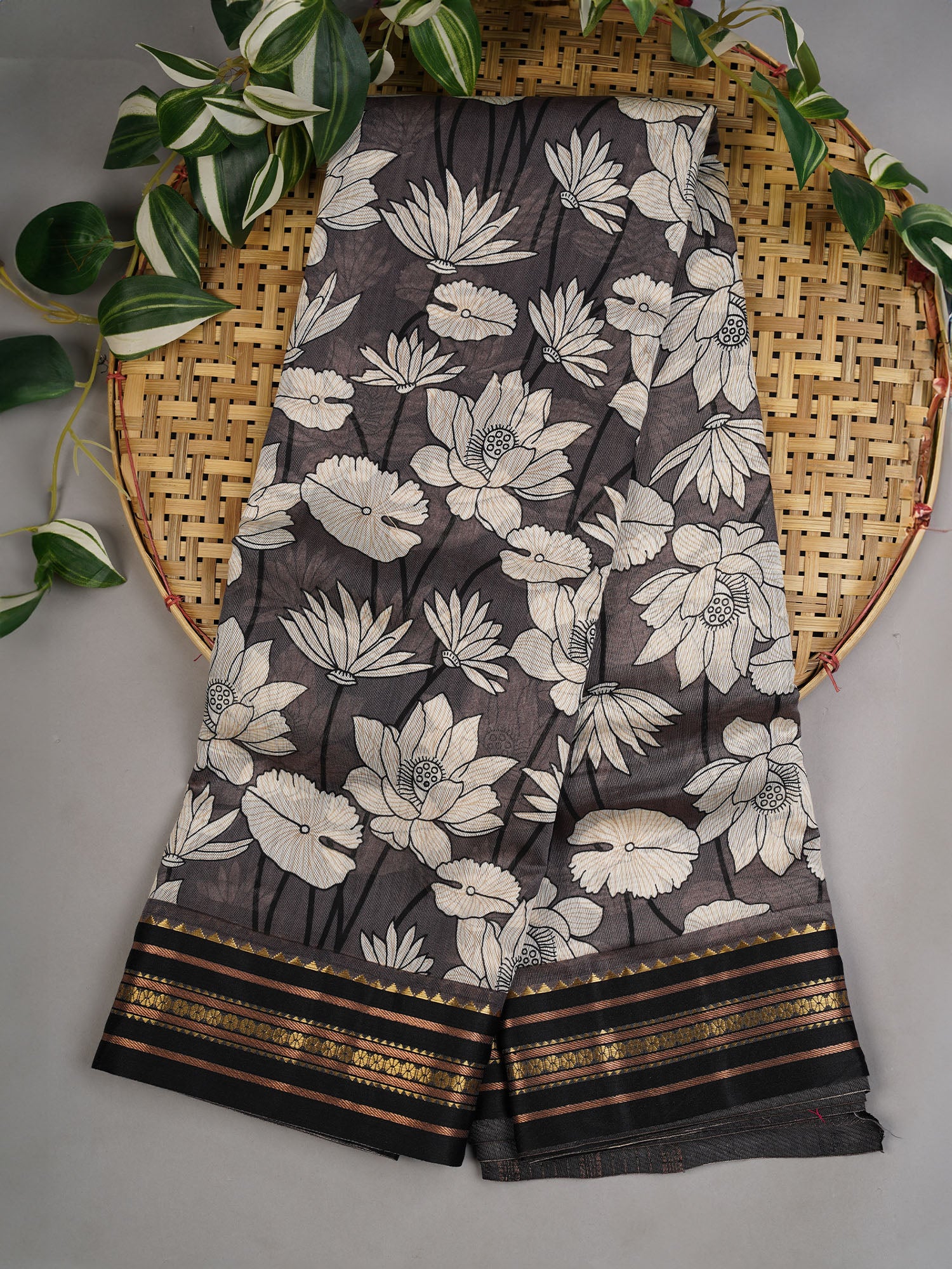 Mangalagiri silk represents the pinnacle of South Indian weaving tradition, and this digital print iteration seamlessly merges heritage craftsmanship with contemporary design. The lustrous silk fabric drapes with natural elegance, offering a fluid silhouette that flatters diverse body types. The sophisticated grey base provides versatility for both formal occasions and refined everyday wear, while the digitally printed motifs ensure crisp, vibrant color reproduction. The contrasting border adds architectural definition, elevating the overall aesthetic with precision detailing. This saree delivers the comfort of breathable silk with the durability expected from quality Mangalagiri weaves, making it an investment piece for discerning wearers who value both artistry and practicality.