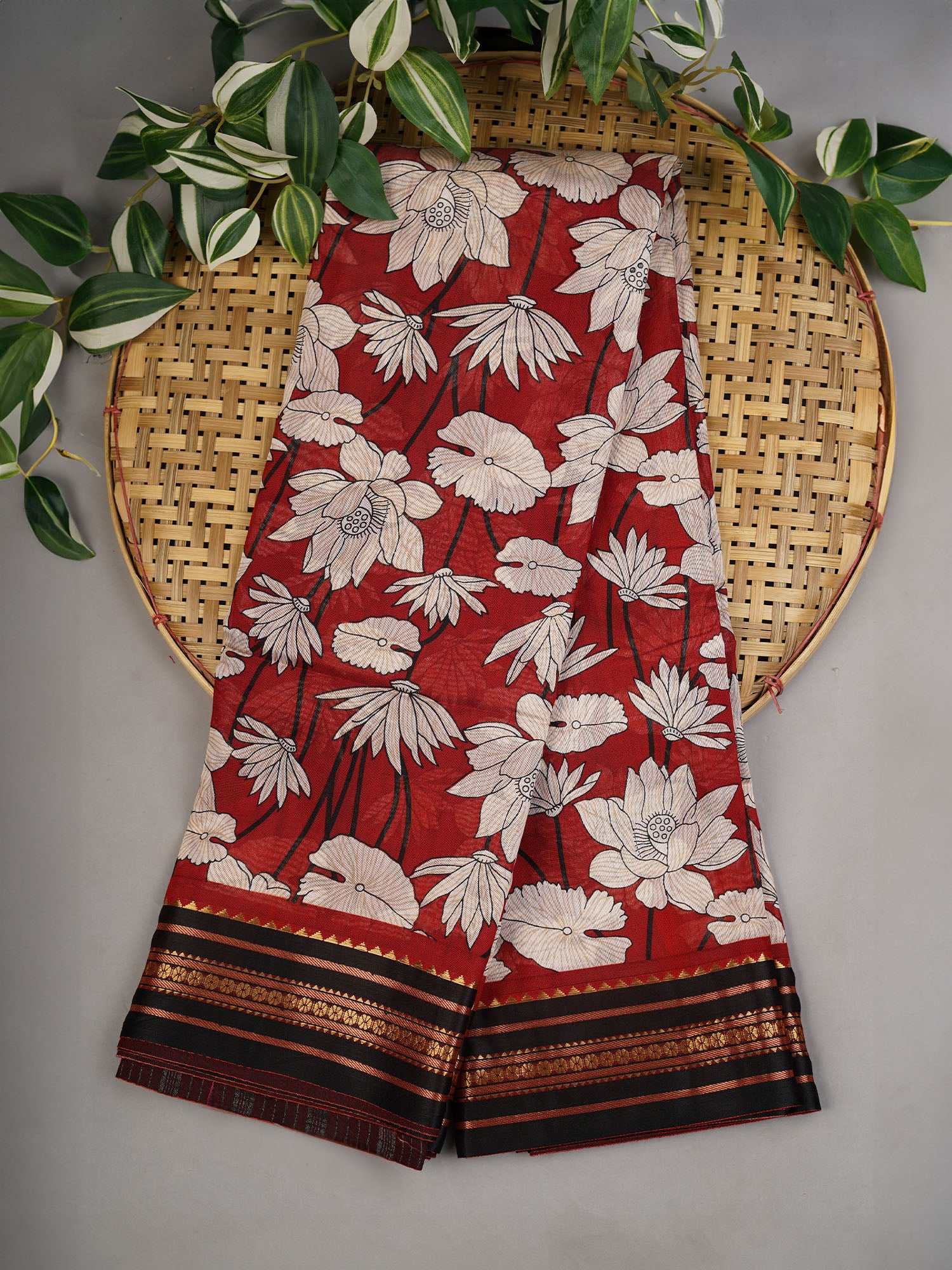 Mangalagiri silk sarees are celebrated for their lightweight drape and natural sheen, making them ideal for both everyday wear and special occasions. This digital print variant features a striking contrast border that adds contemporary flair to the traditional weave. The grey tone offers versatility, pairing effortlessly with various blouse colors and jewelry styles. The digital printing technique ensures vibrant, detailed patterns that resist fading, while the silk's breathable nature keeps you comfortable throughout the day. Perfect for those seeking modern design without compromising on authentic craftsmanship.