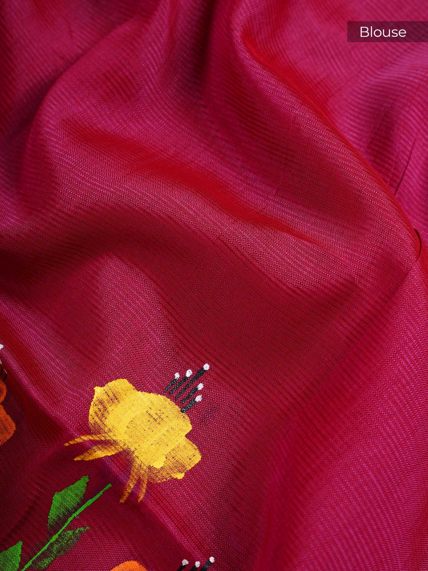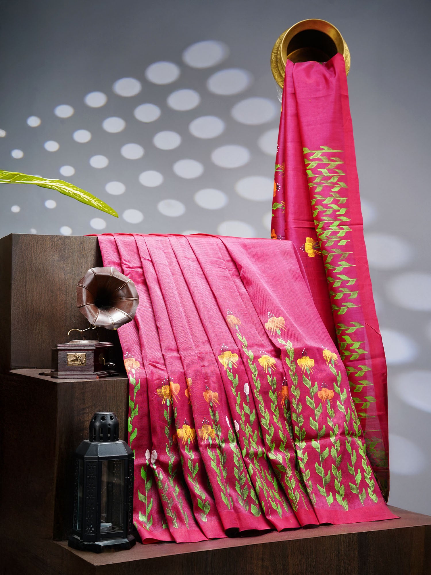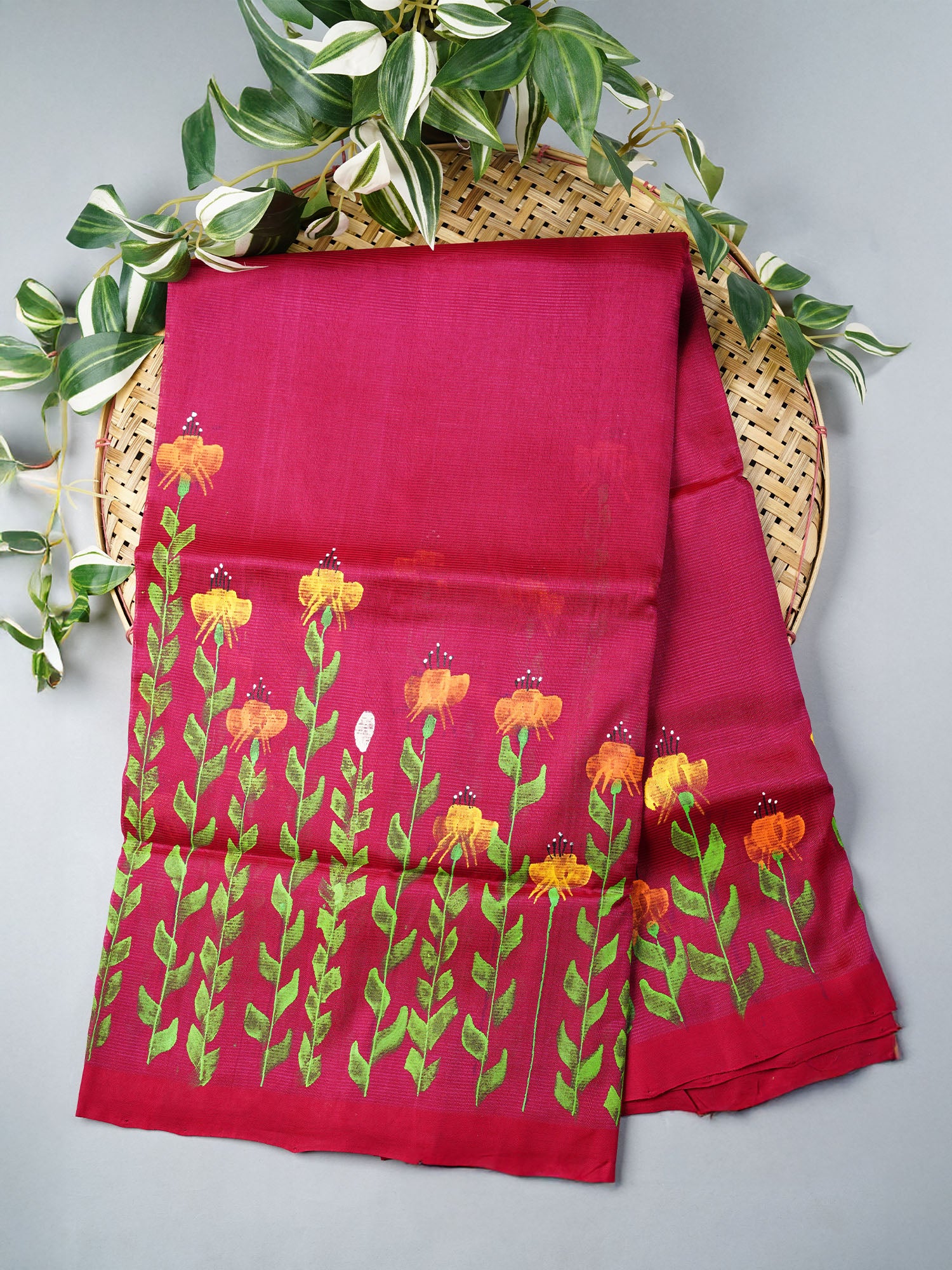 Mangalagiri Silk Saree With Hand Painting - Rani Pink