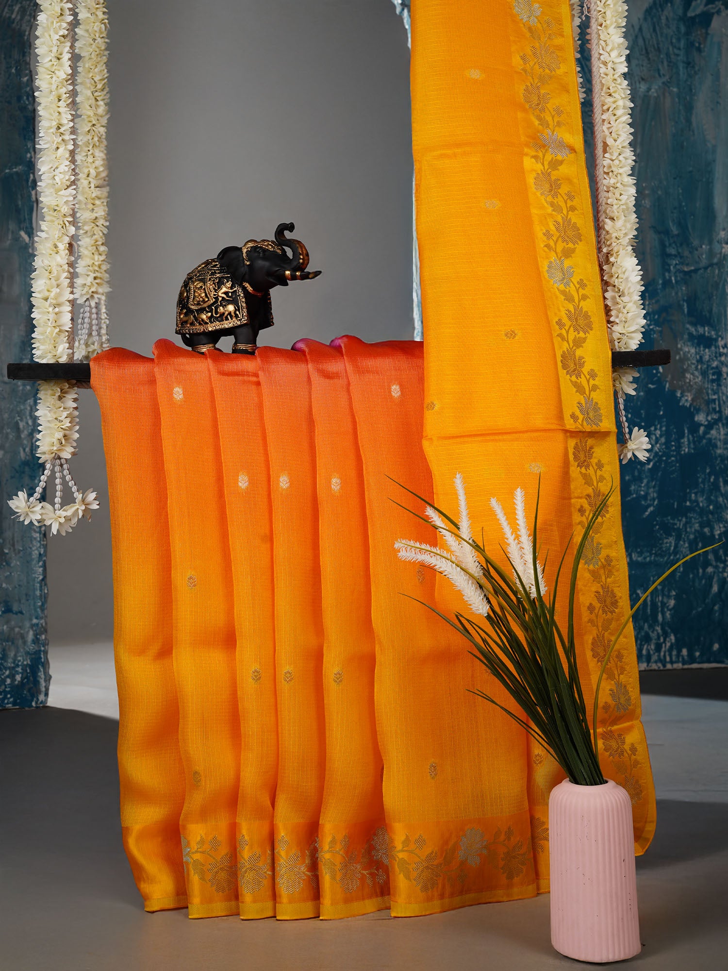 Discover the charm of our Manipur kota sarees, where traditional craftsmanship meets contemporary elegance. These lightweight beauties feature delicate golden butties scattered across the fabric, creating a mesmerizing shimmer with every movement. The luxurious satin border adds a touch of sophistication, while the gorgeous golden yellow hue brings warmth and radiance to your complexion. Perfect for festivals, celebrations, or everyday elegance, this saree effortlessly transitions from casual gatherings to formal occasions. The breathable kota fabric ensures comfort throughout the day, making it an ideal choice for the Indian climate. Embrace timeless beauty with a modern twist.