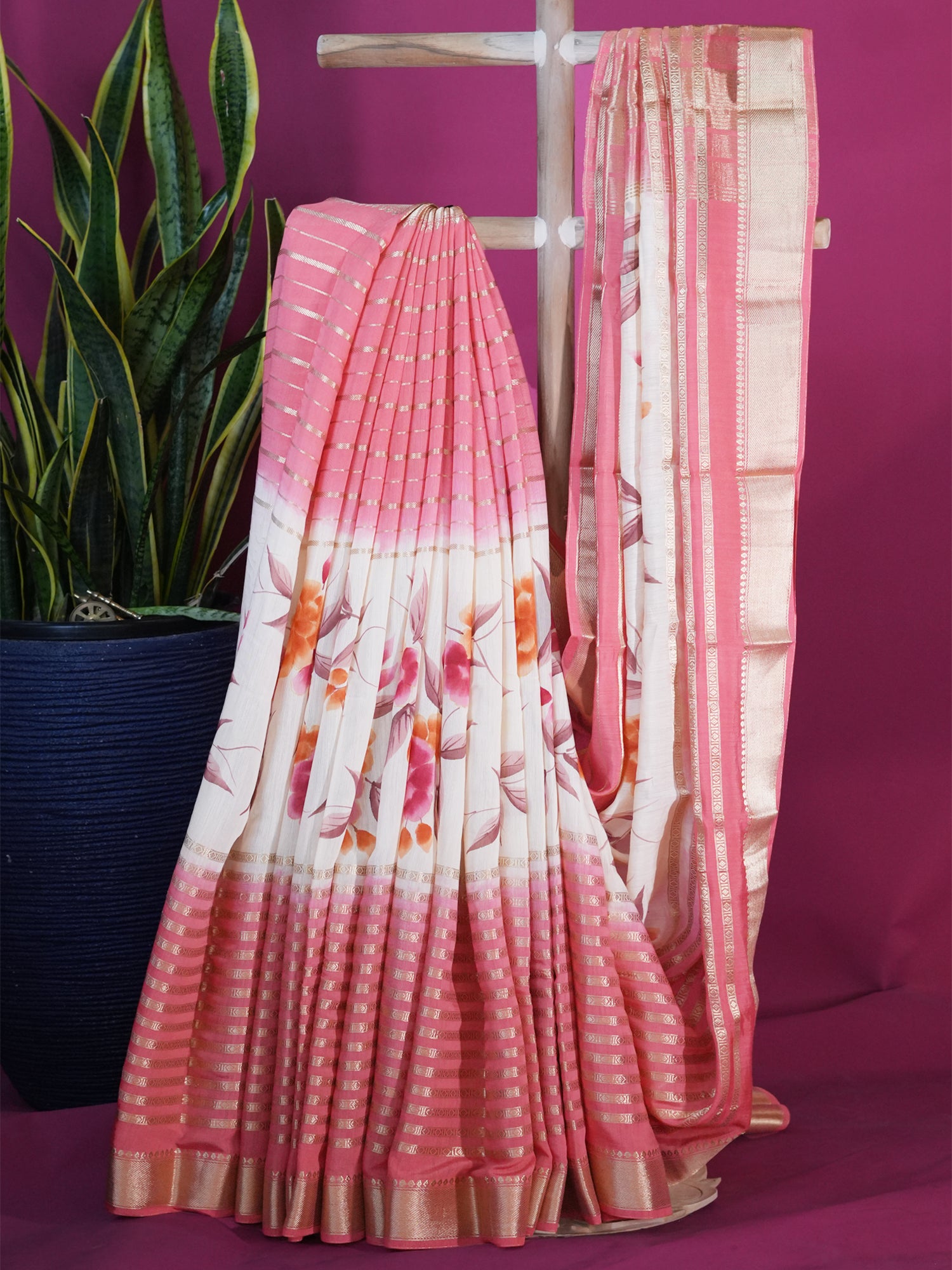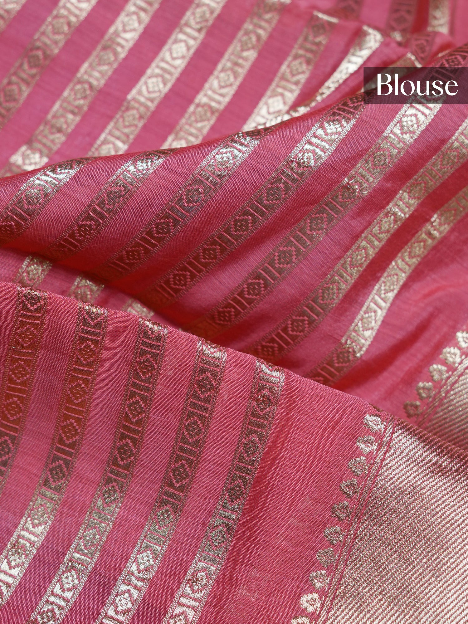 Drape yourself in delicate elegance with this stunning Munga silk saree in soft baby pink. The lustrous fabric catches light...