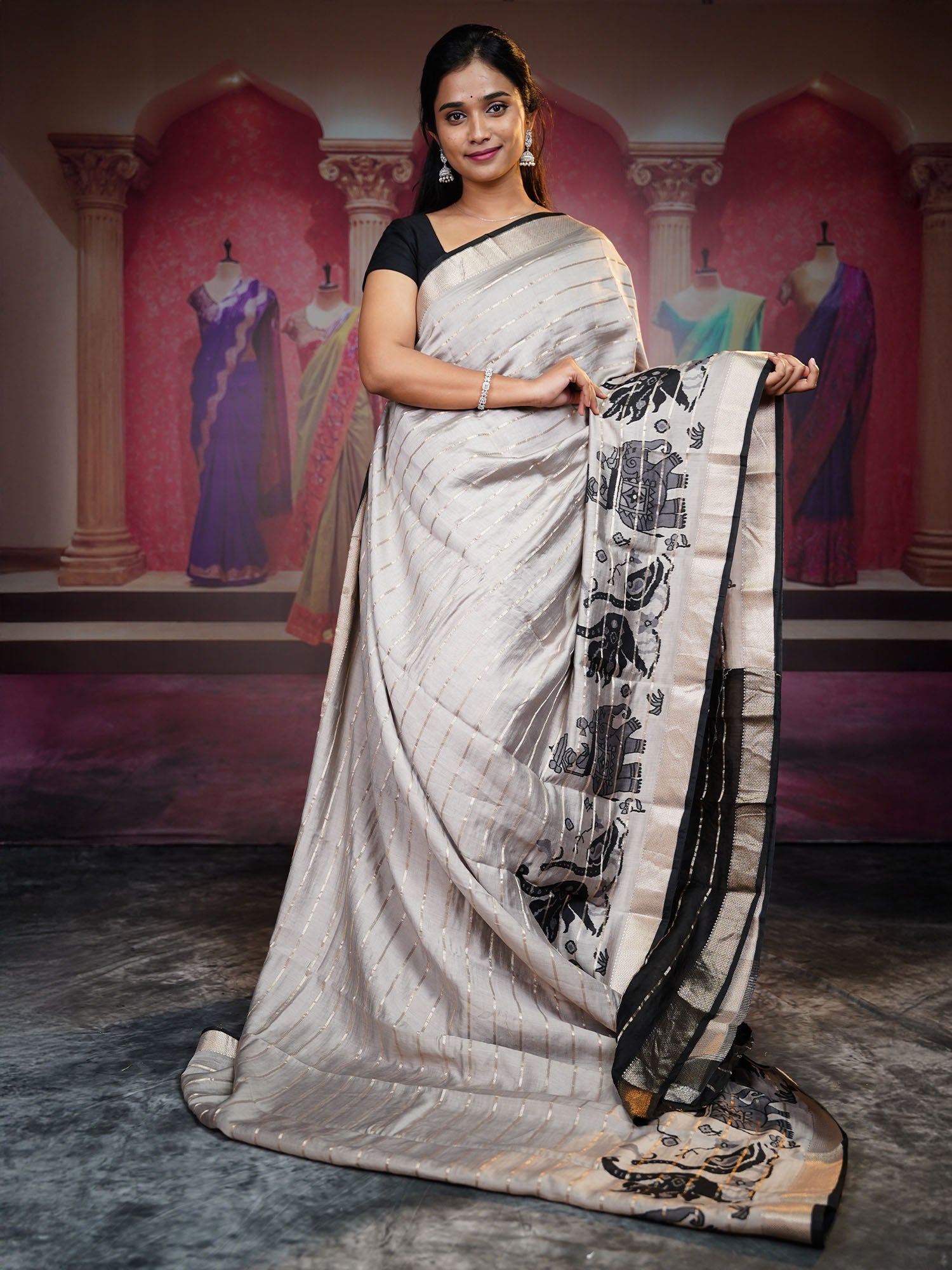 Drape yourself in pure elegance with this stunning Munga silk saree, where traditional craftsmanship meets contemporary flair. The luxurious silk fabric flows beautifully, offering that perfect blend of comfort and sophistication for any occasion. What truly sets this piece apart is the eye-catching digital print that brings vibrant patterns to life, paired with a resplendent golden zari border that adds just the right touch of glamour. Whether you're heading to a celebration or making a statement at a gathering, this saree promises to turn heads and make you feel absolutely fabulous. A timeless investment that celebrates your style with grace and panache.