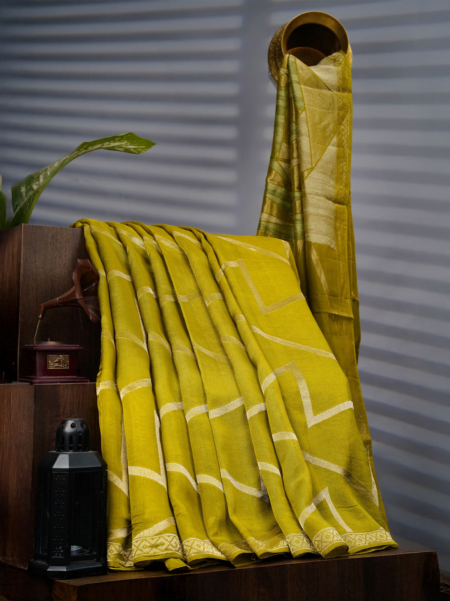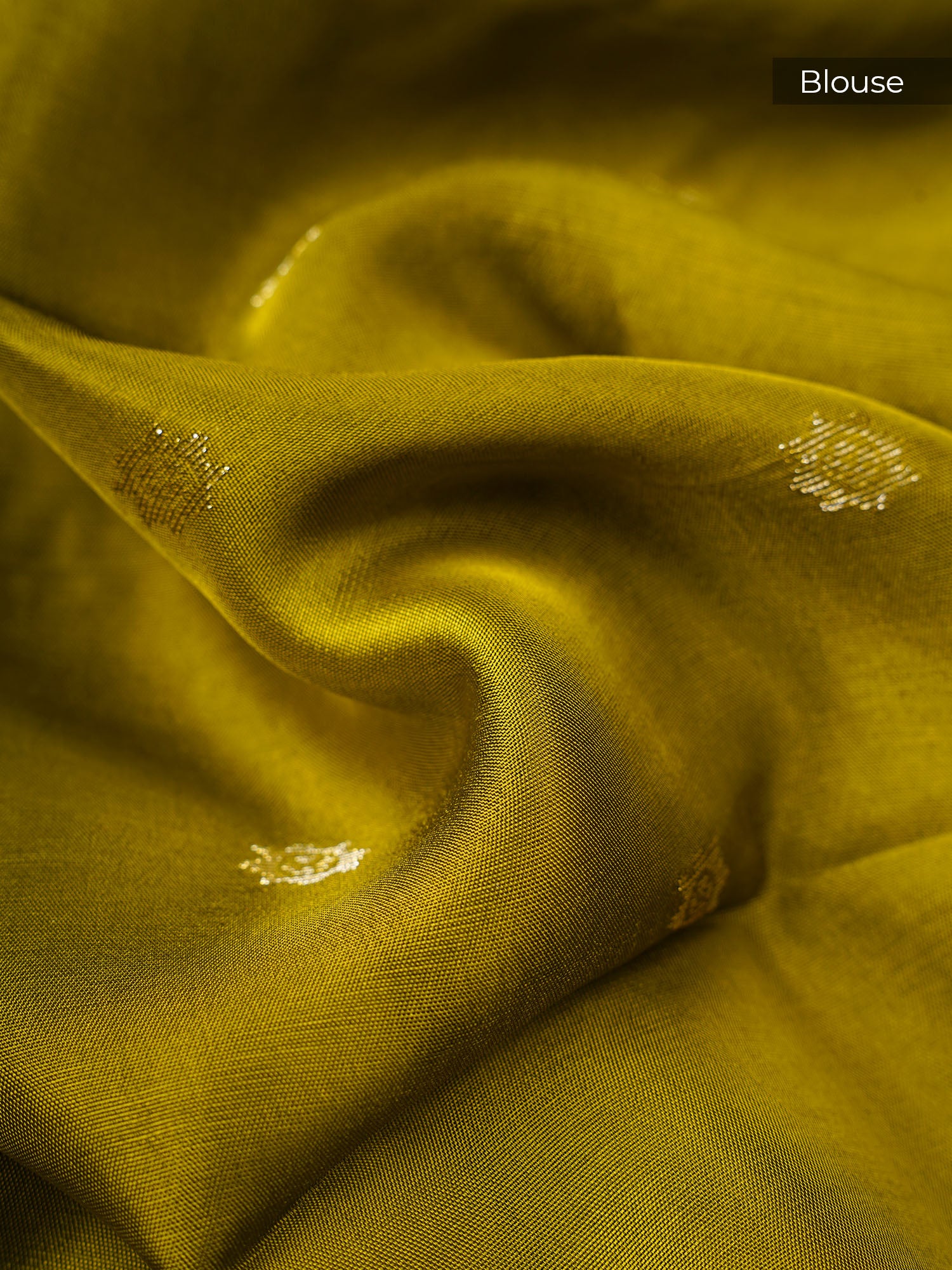 Drape yourself in pure elegance with this stunning Munga silk saree, where tradition meets timeless beauty. The luxurious silk fabric flows effortlessly, while the intricate gold zari border adds a touch of regal sparkle that catches every eye. Perfect for weddings, festivals, or those moments when you want to feel absolutely radiant. The rich mehndi hue complements all skin tones and pairs beautifully with traditional jewelry. A wardrobe essential that transforms you into the showstopper of any celebration.