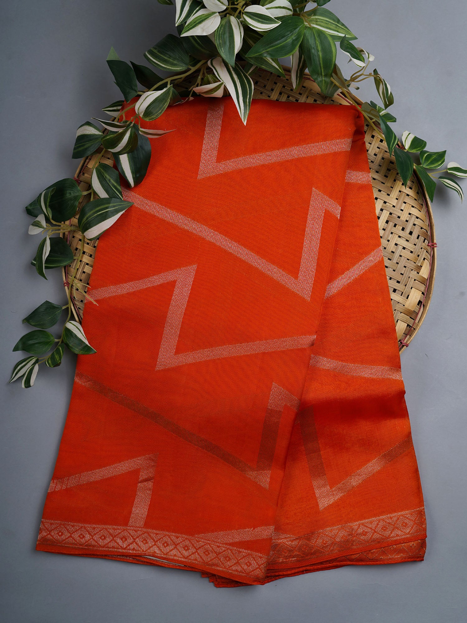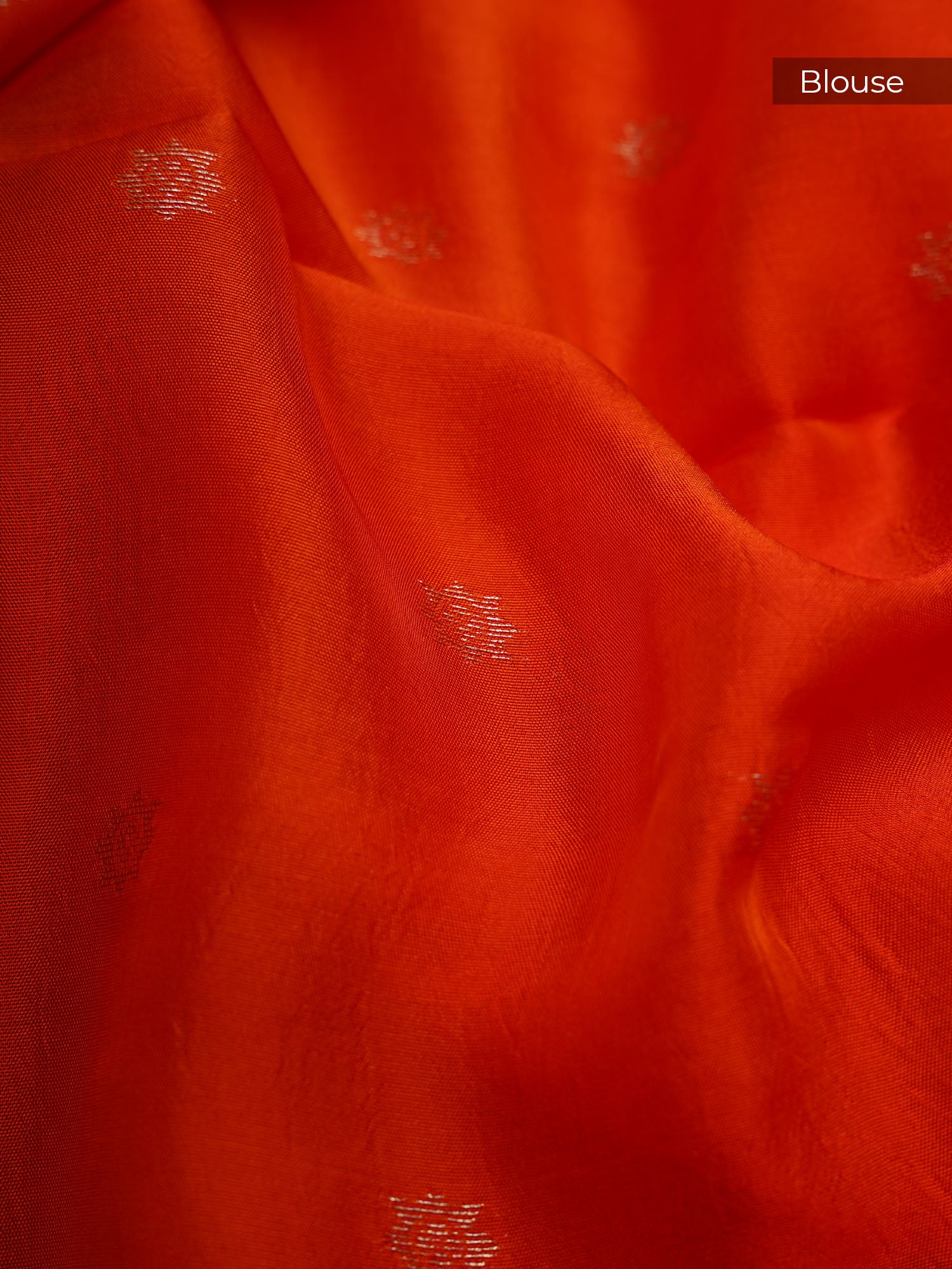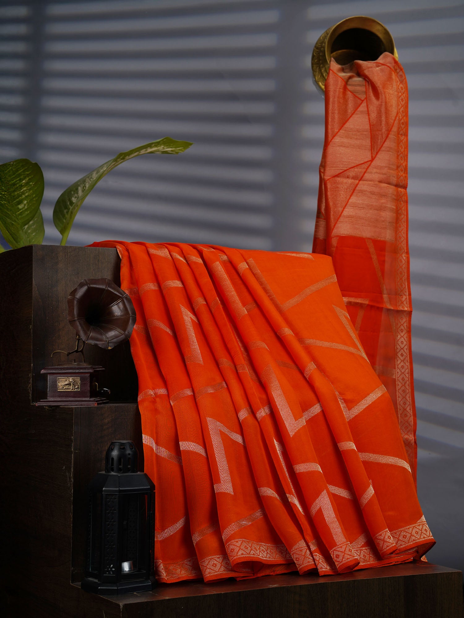 Dive into vibrant elegance with this stunning Munga silk saree that's pure sunshine wrapped in tradition. The rich orange hue...