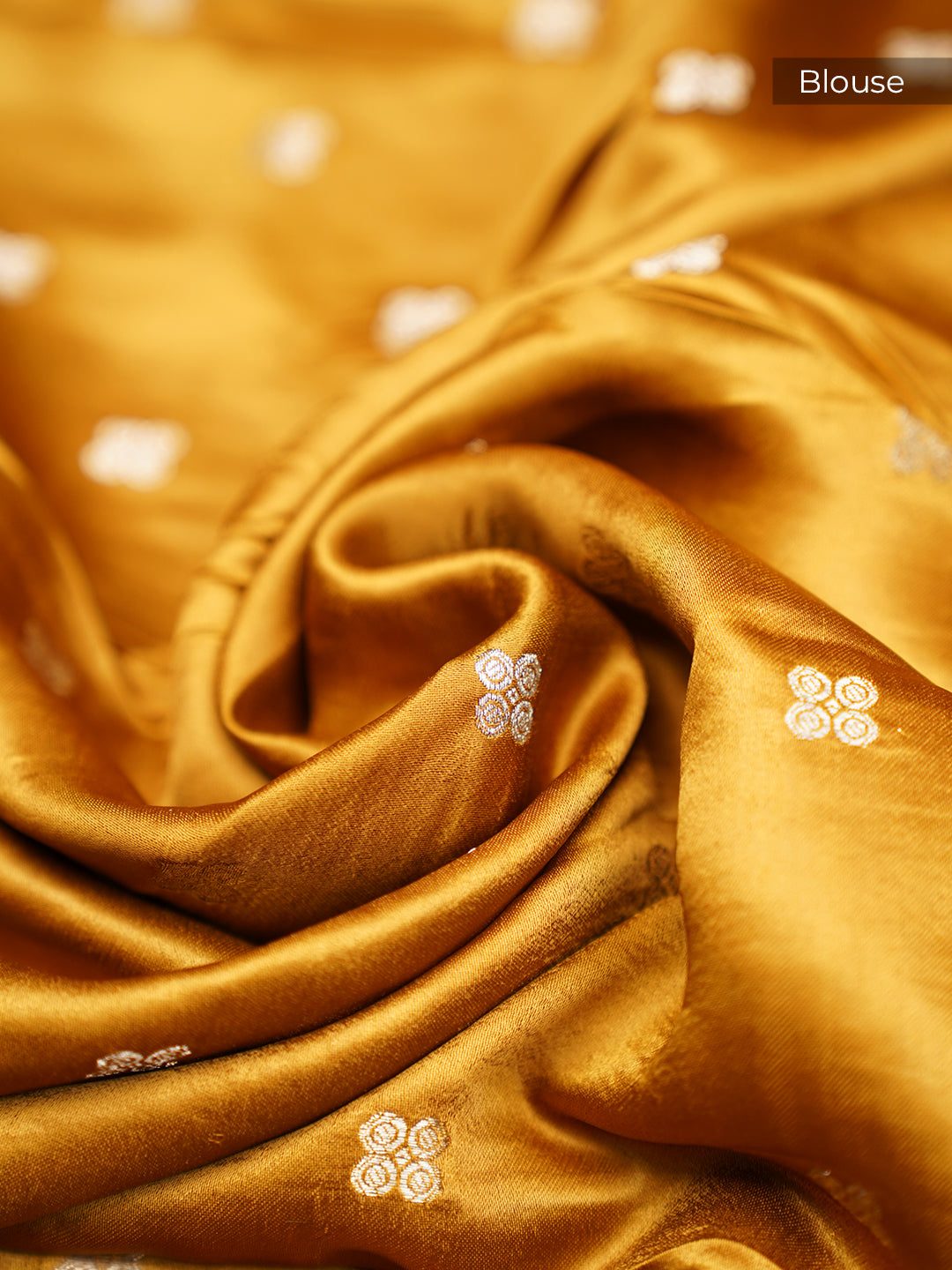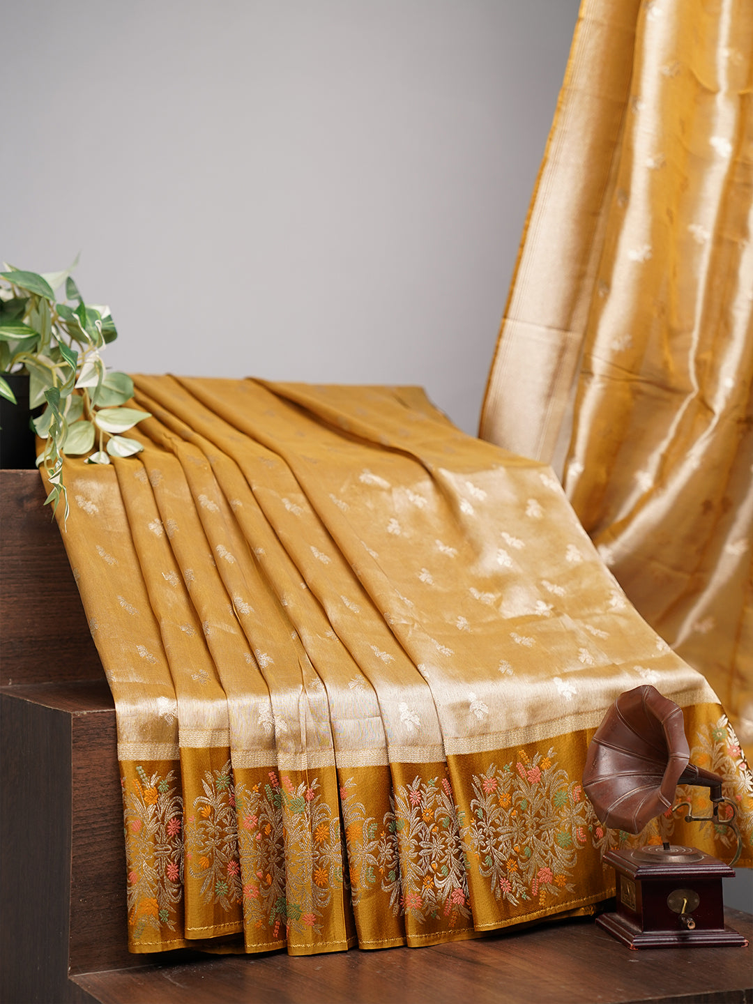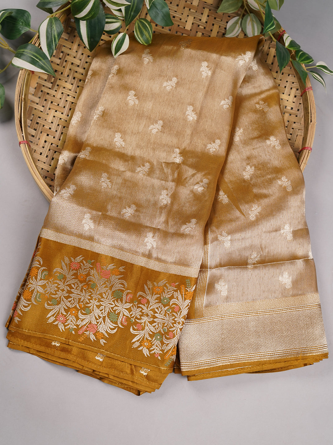 Munga Tissue Silk with Satin border & Meena Kari Weaving Buties and Border