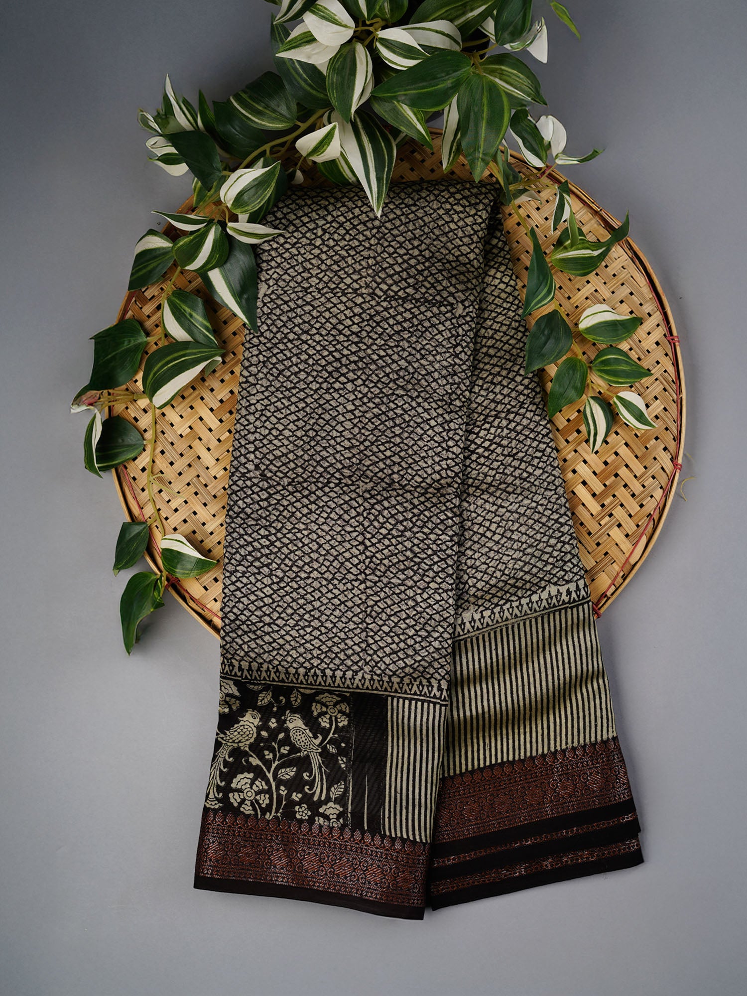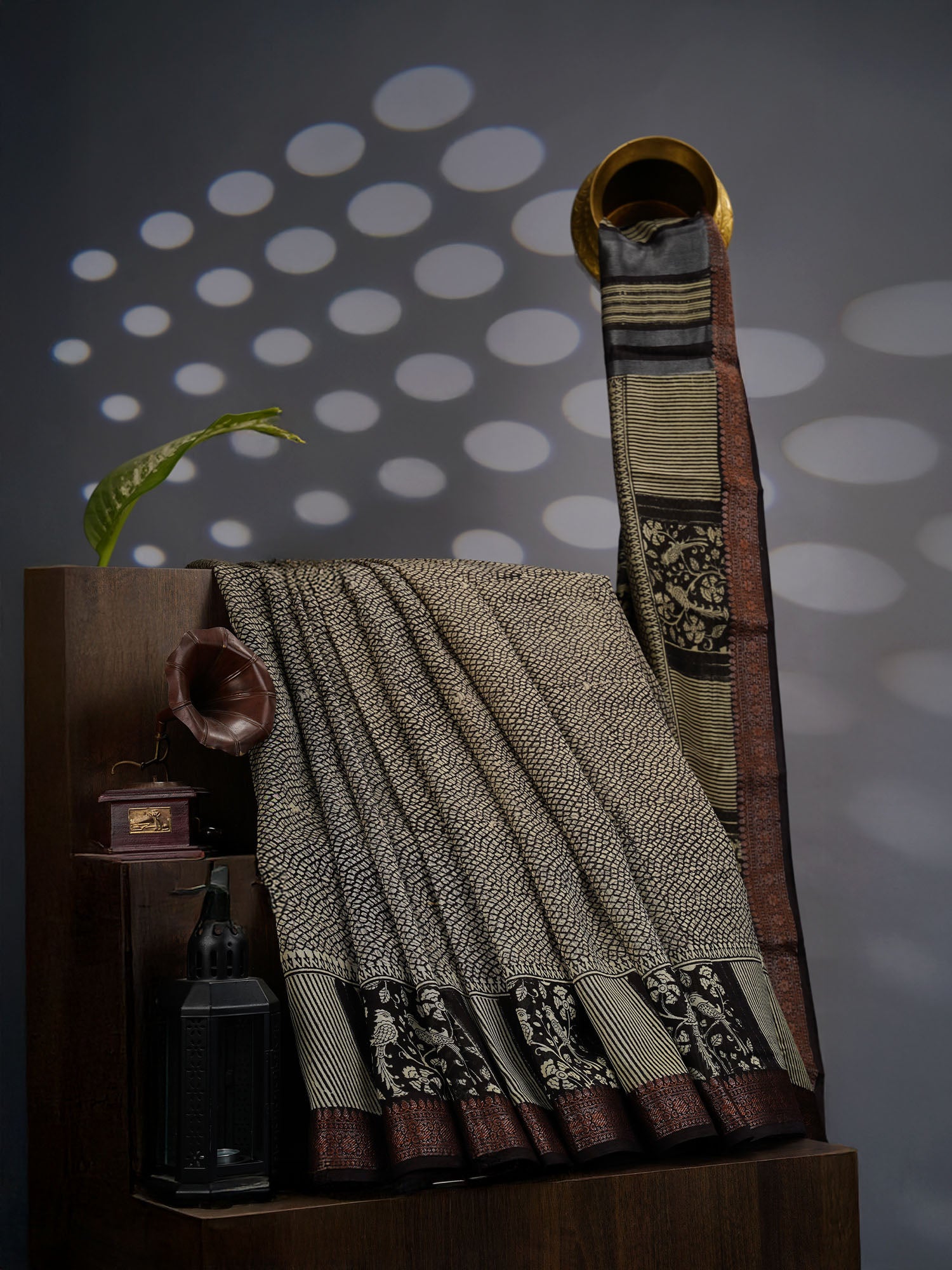 Add a touch of antique charm to your wardrobe with our Black Muslin Silk Saree! The delicate fabric and intricate...