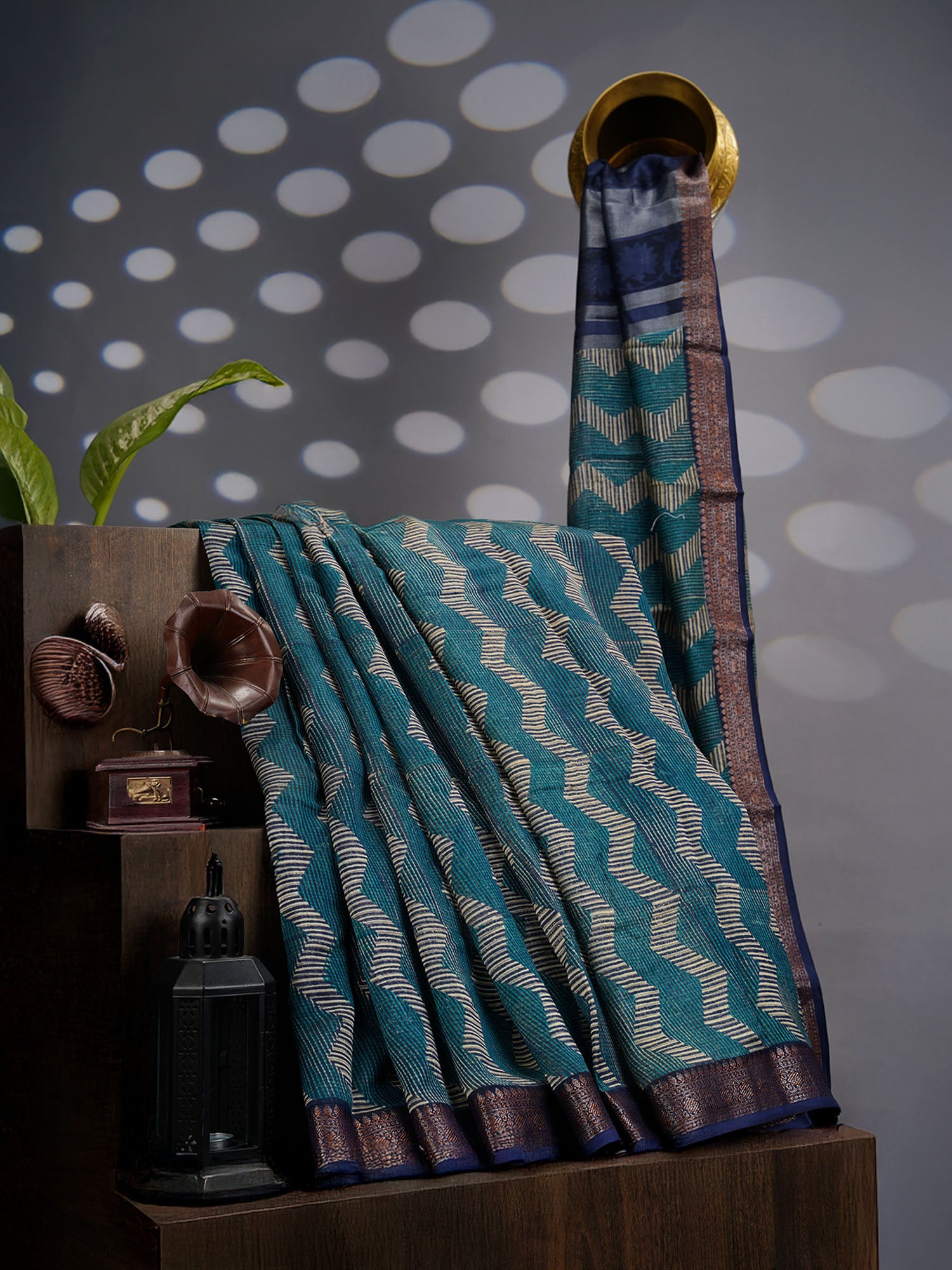 Muslin Silk Saree with Antique Zari Border- Rama Green