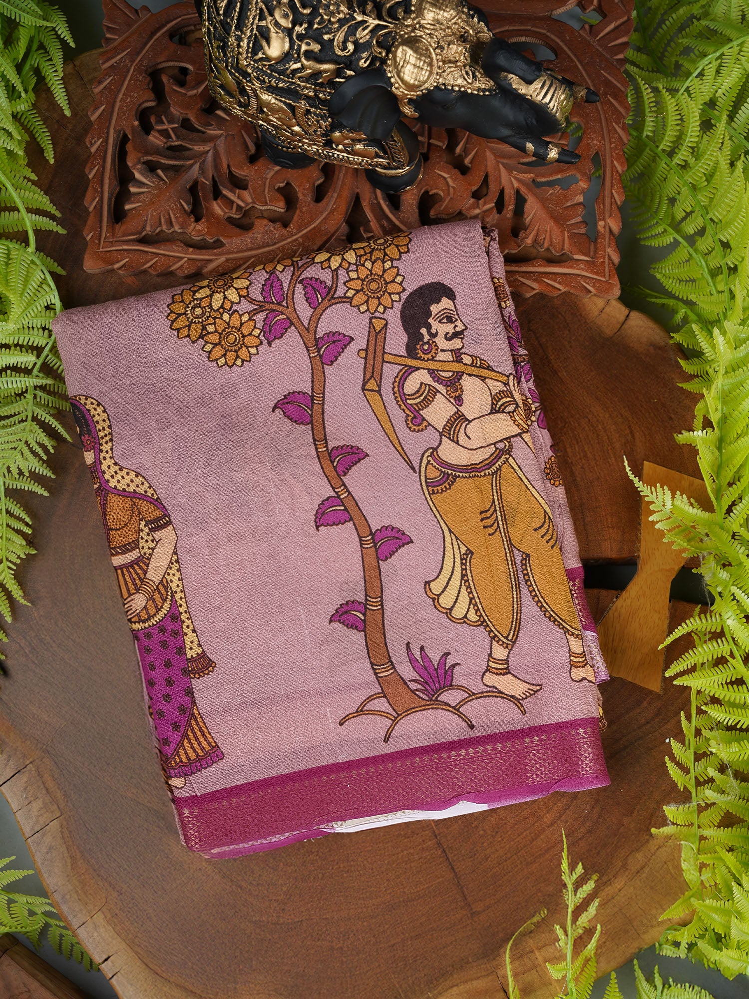 Muslin Silk With Kalamkari Print and zari Border - L Pink