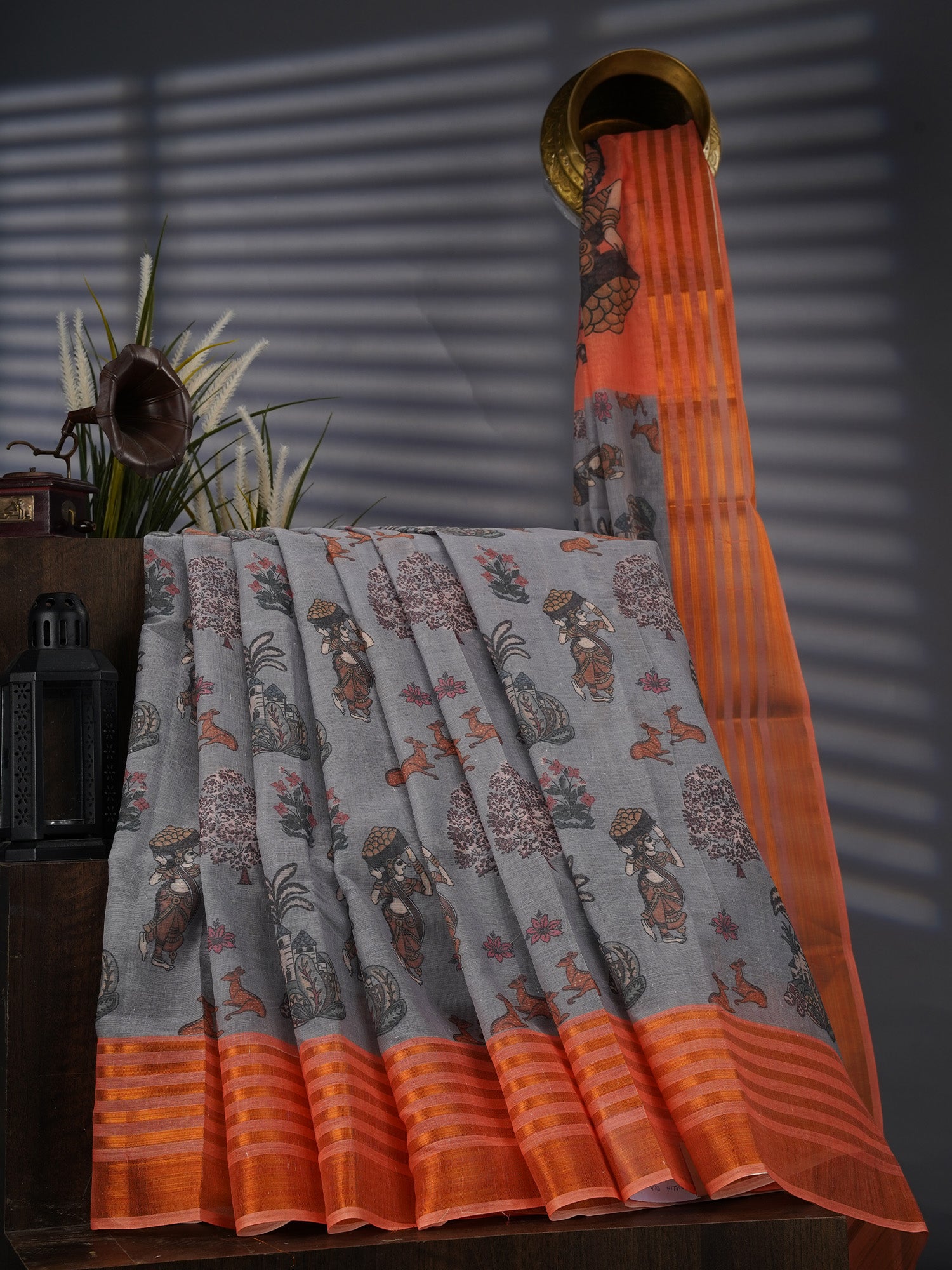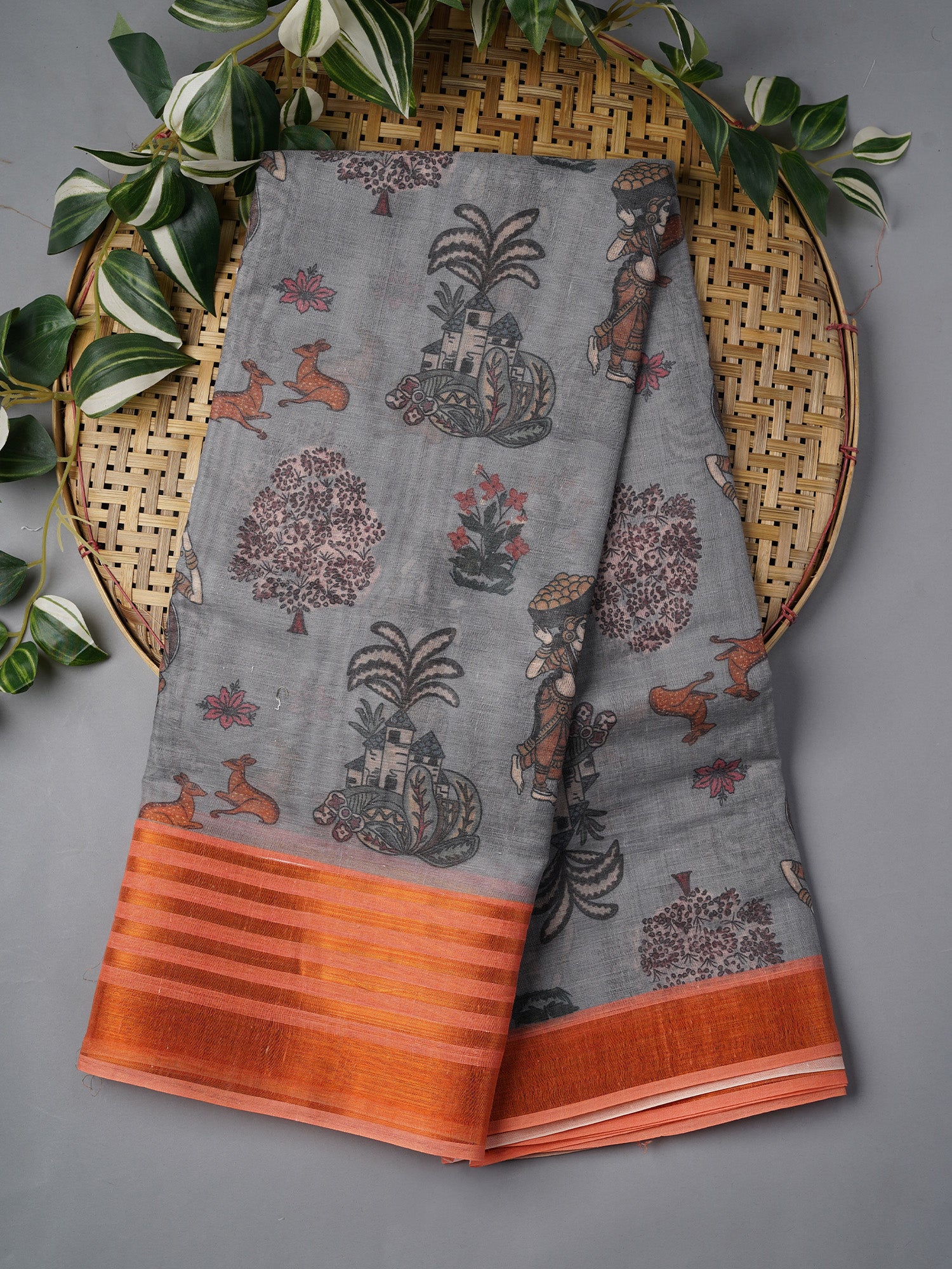 Discover the perfect blend of elegance and artistry with this stunning Muslin Silk saree! Featuring an enchanting Kalamkari print that tells stories through intricate hand-painted designs, this piece celebrates traditional craftsmanship in the most delightful way. The soft grey base provides a sophisticated canvas, while the contrasting border adds just the right pop of visual drama. Lightweight and breathable muslin silk keeps you comfortable all day, whether you're attending a festive gathering or making a casual statement. A timeless choice for those who appreciate the magic of heritage textiles with a contemporary twist.