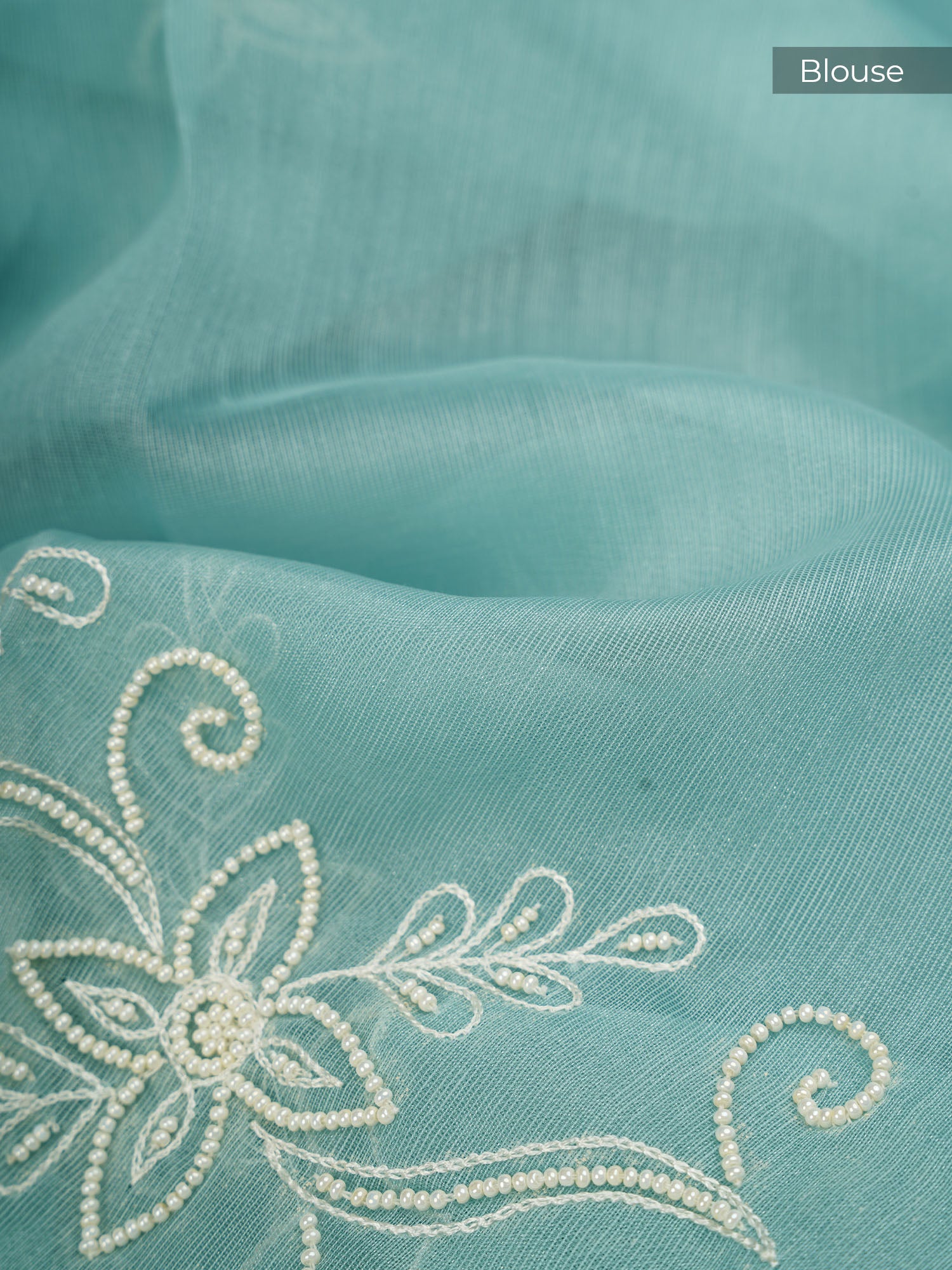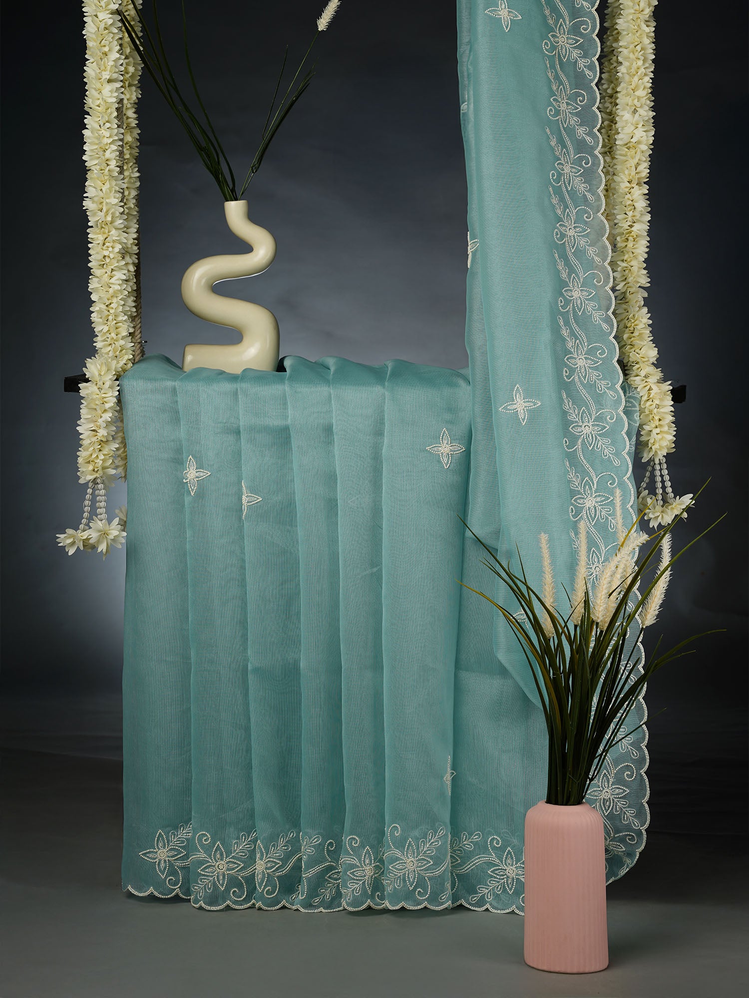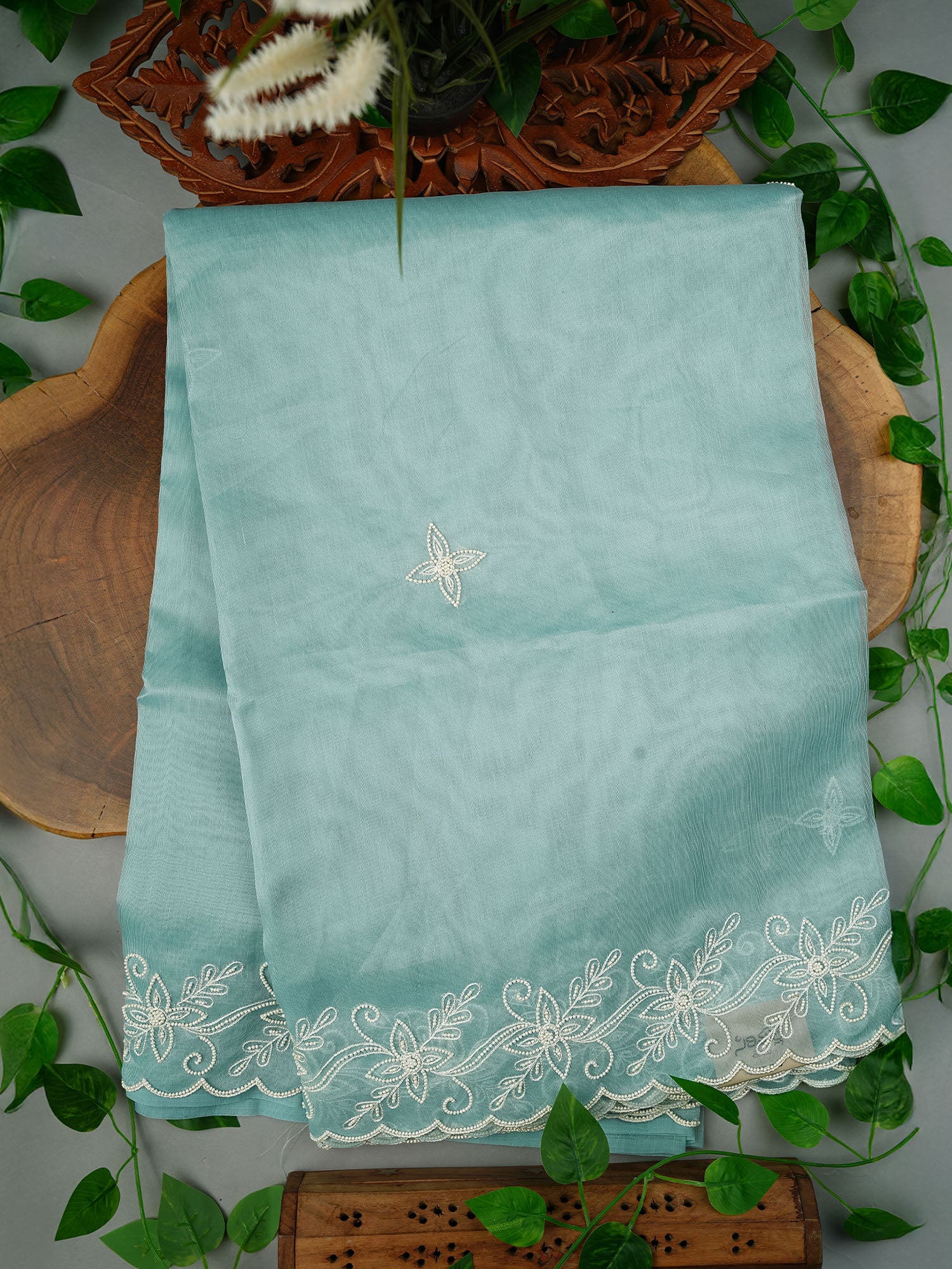 Organza Saree with Embroidery Butties and Border- Mint Blue