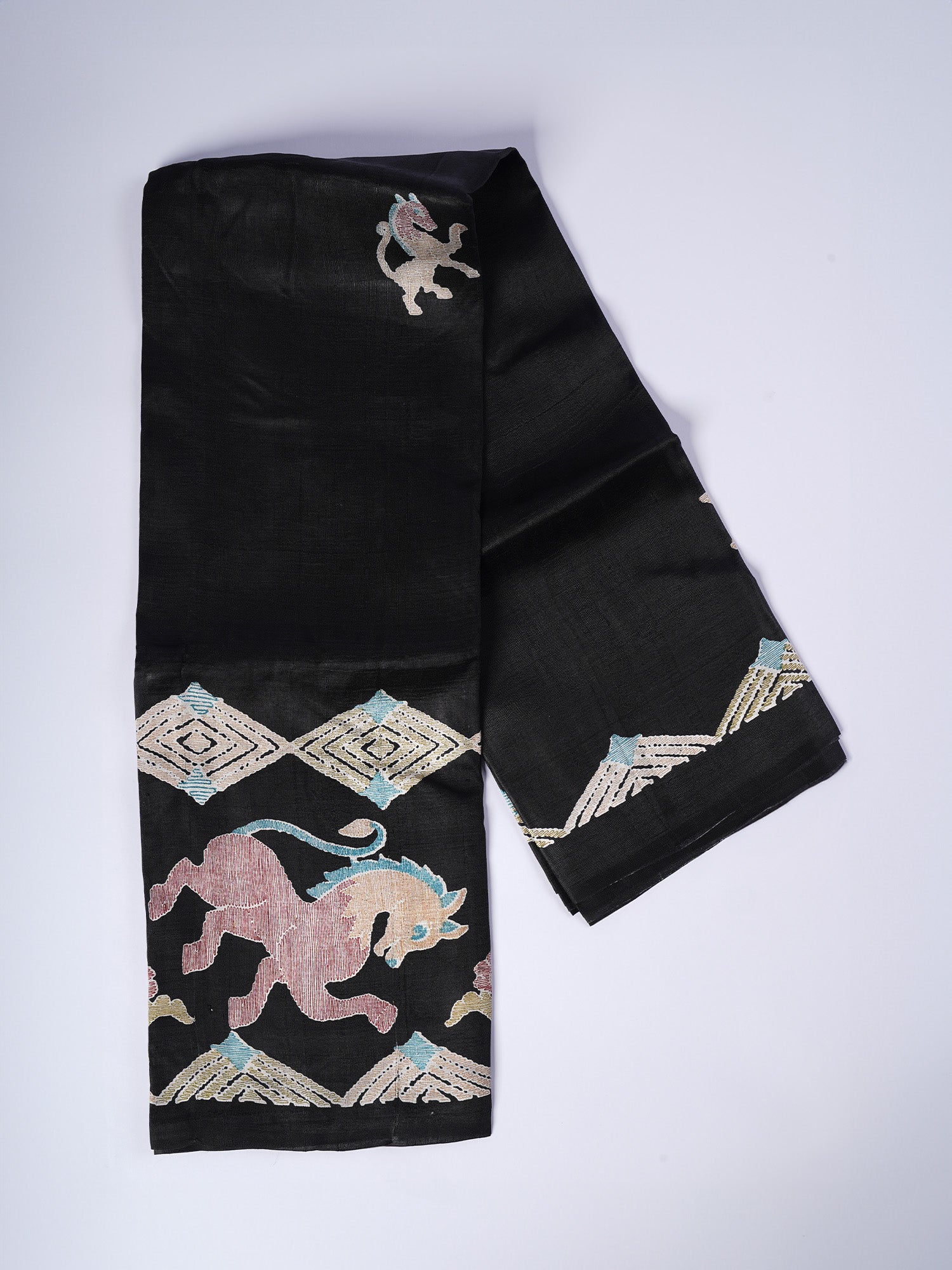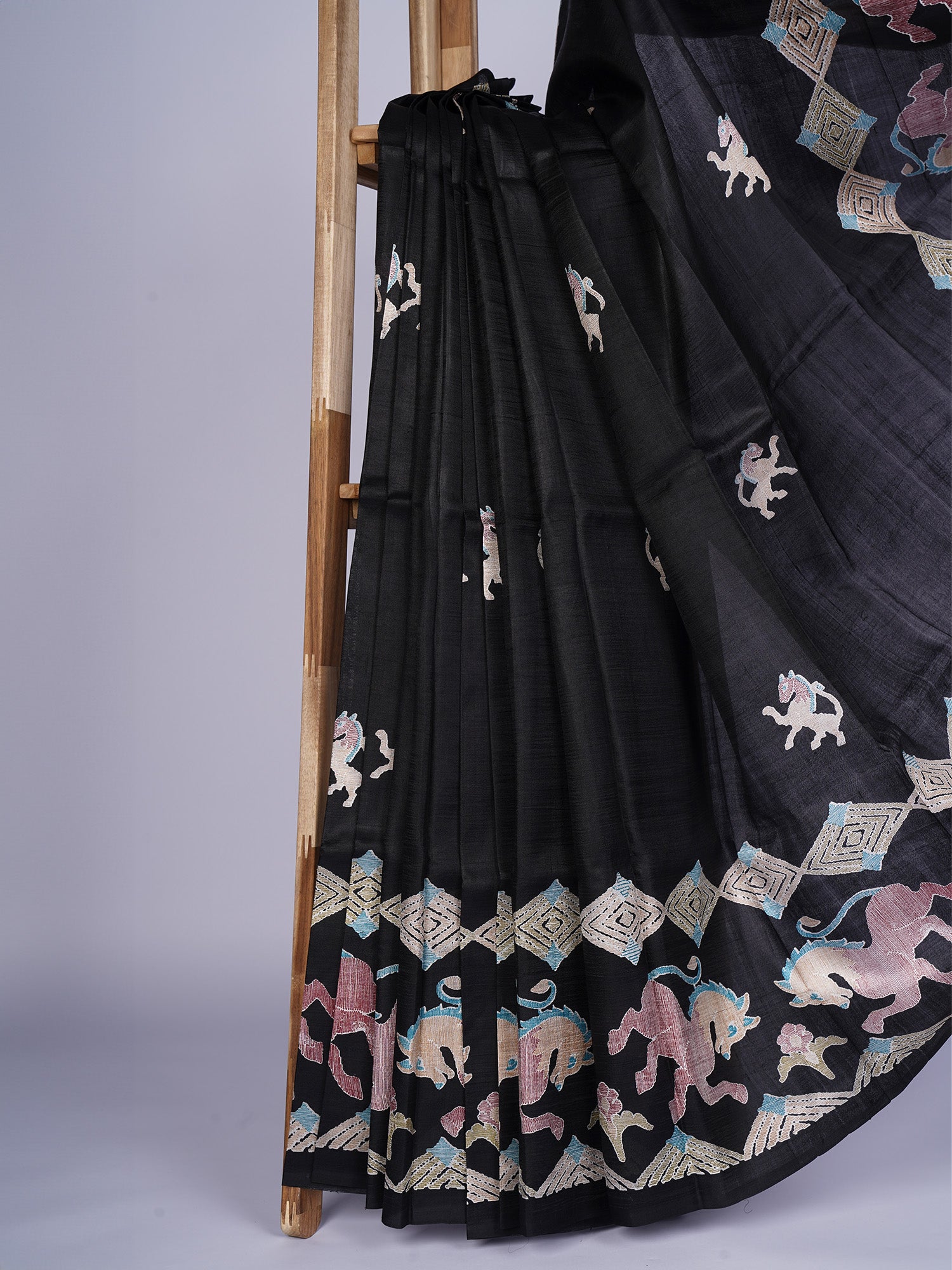 This pure silk saree is paired with a matching blouse featuring an elegant horse print, blending traditional craftsmanship with contemporary...