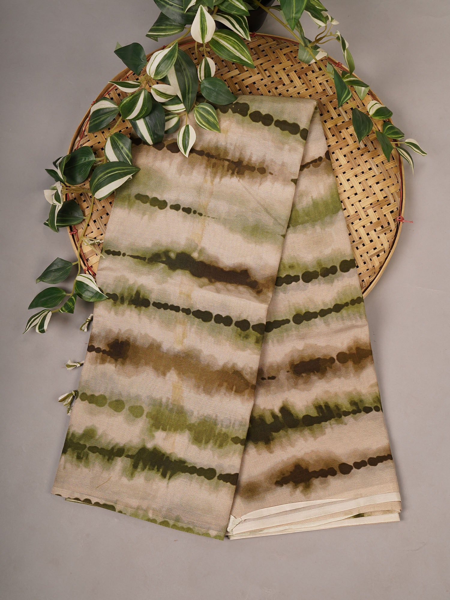 Russian Crape Shibori Print Kalamkari Pallu - Cream & Green