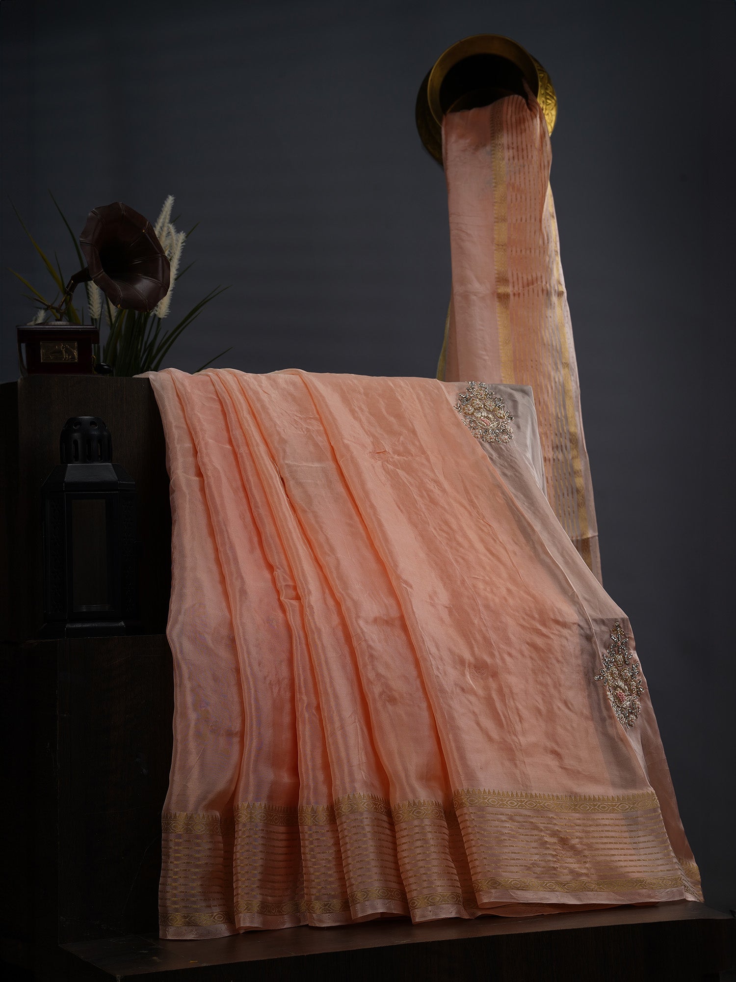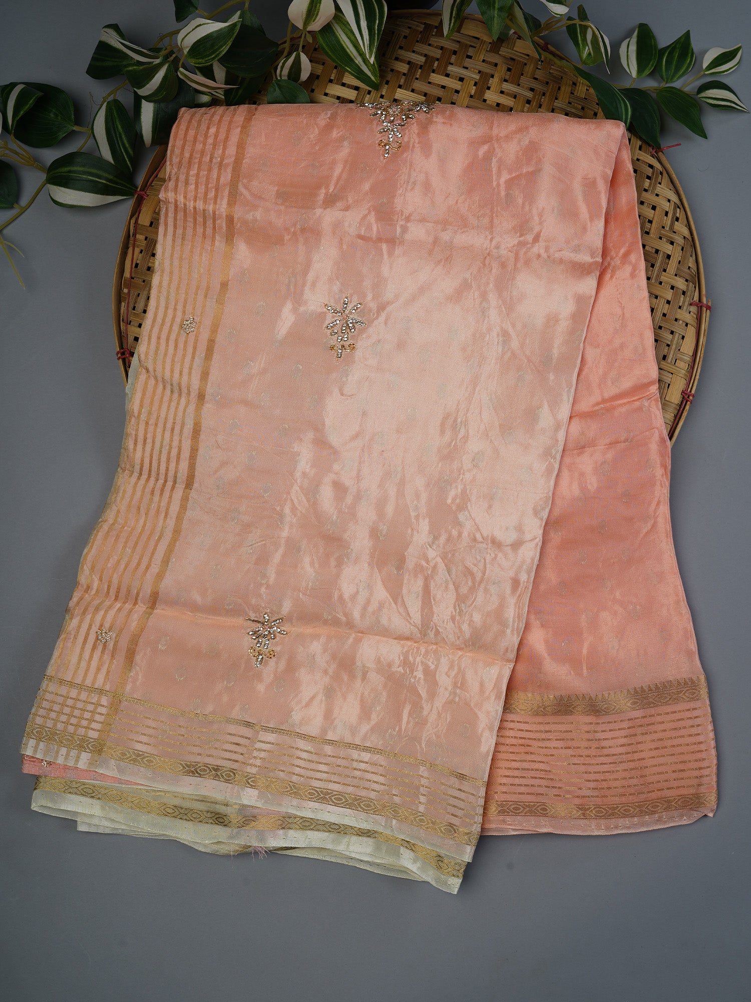 Russian Crape with Embroidery Buttis Banaras Border - Orange