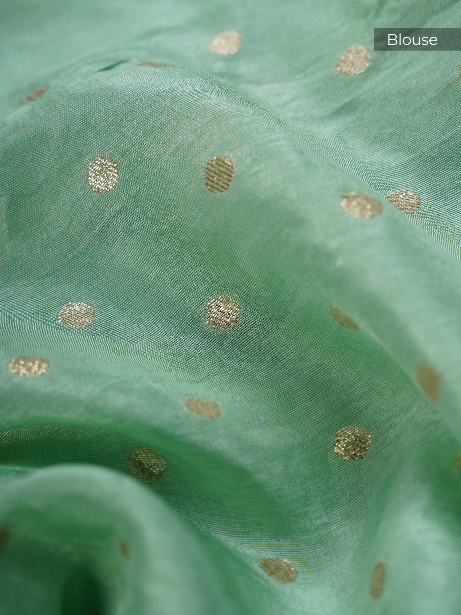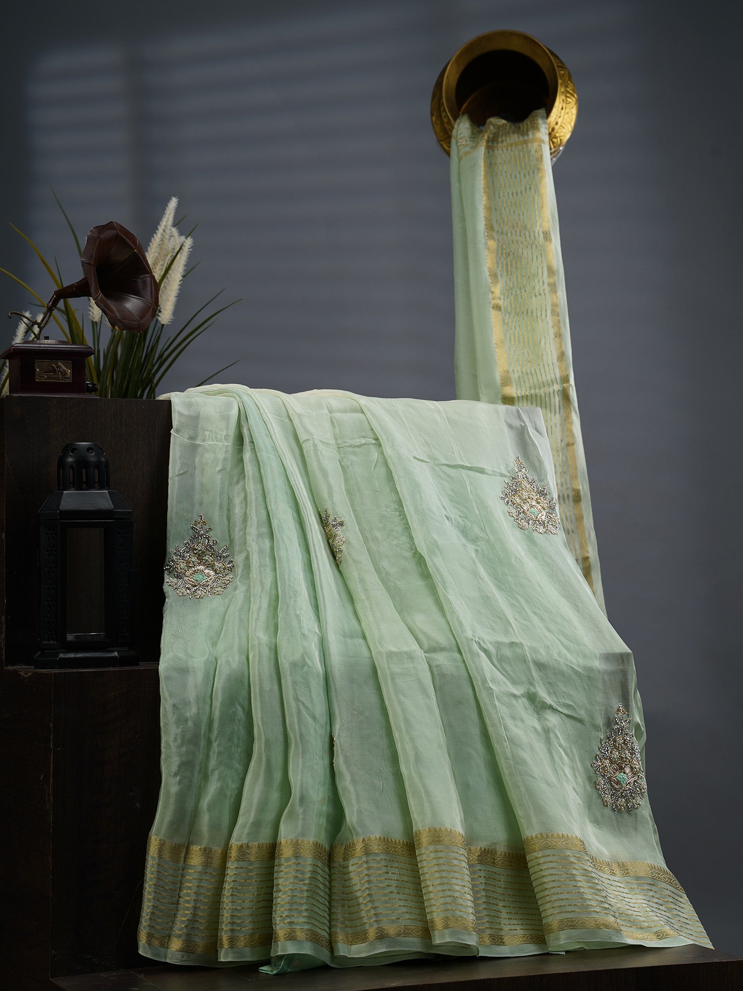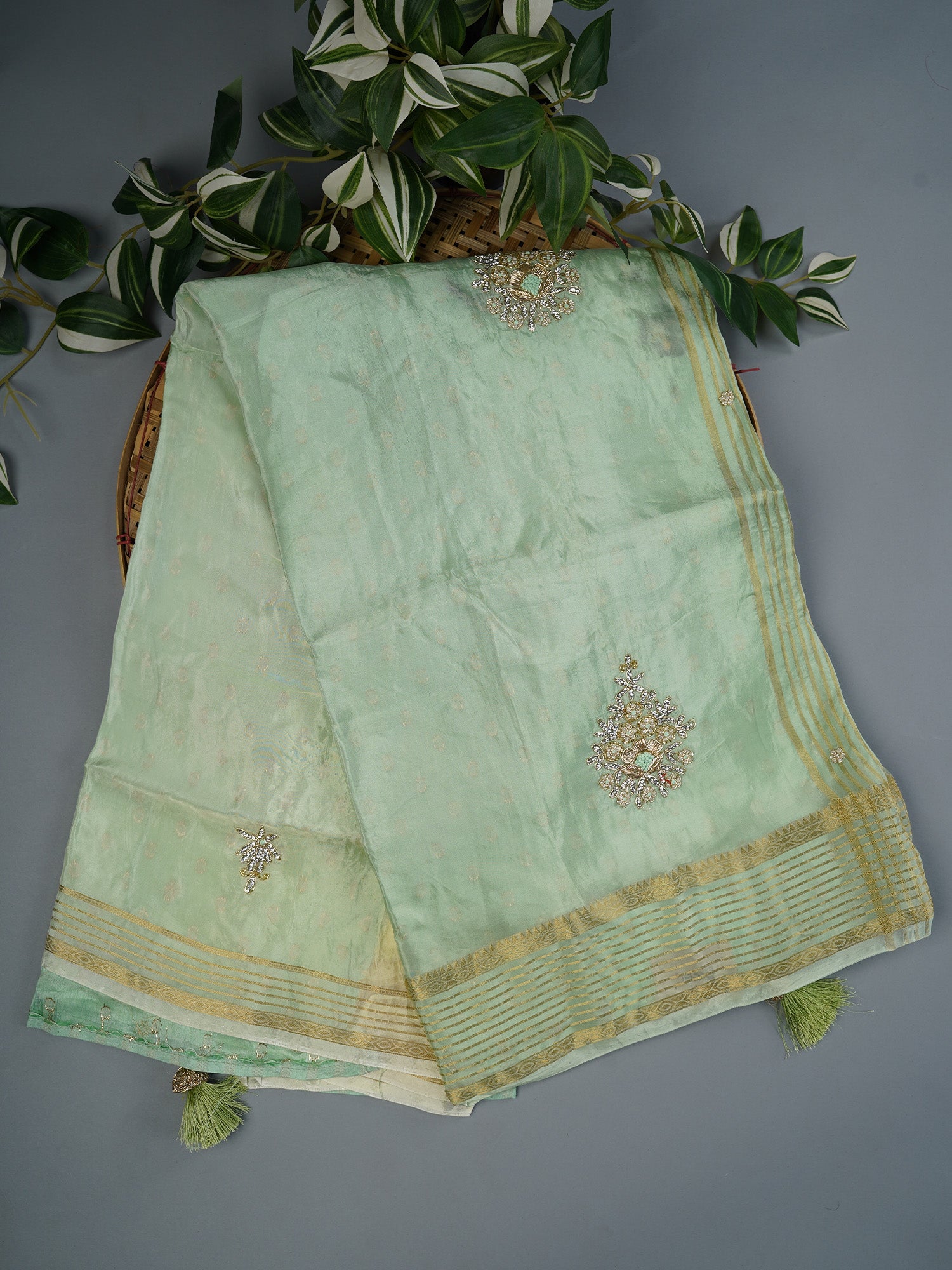 Russian Crape with Embroidery Buttis Banaras Border - Sea Green