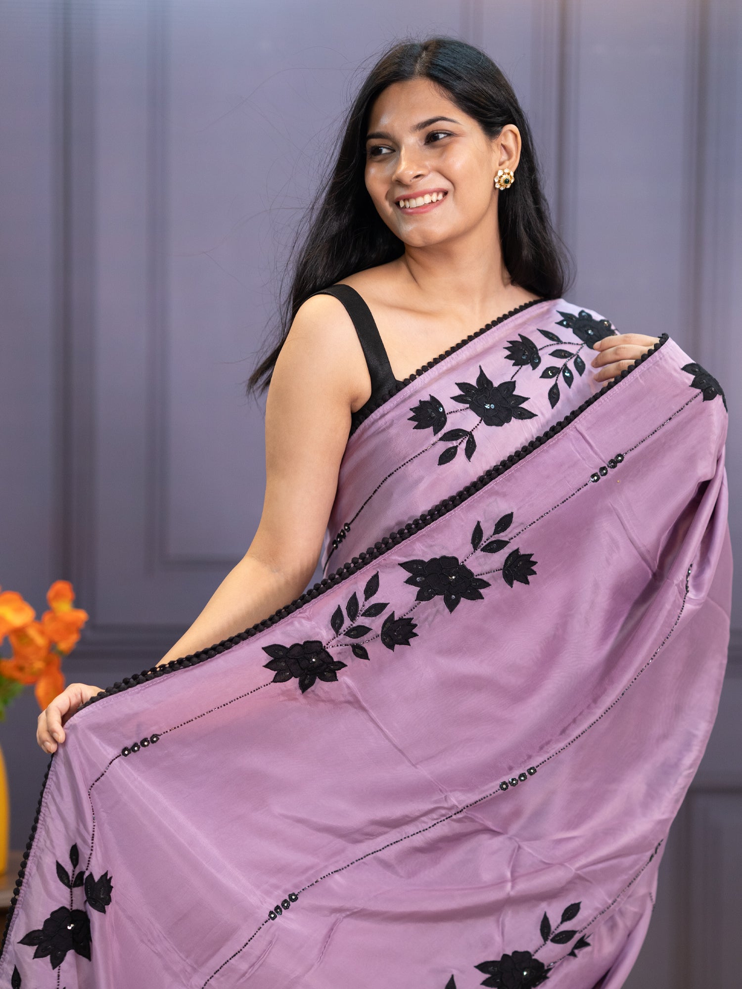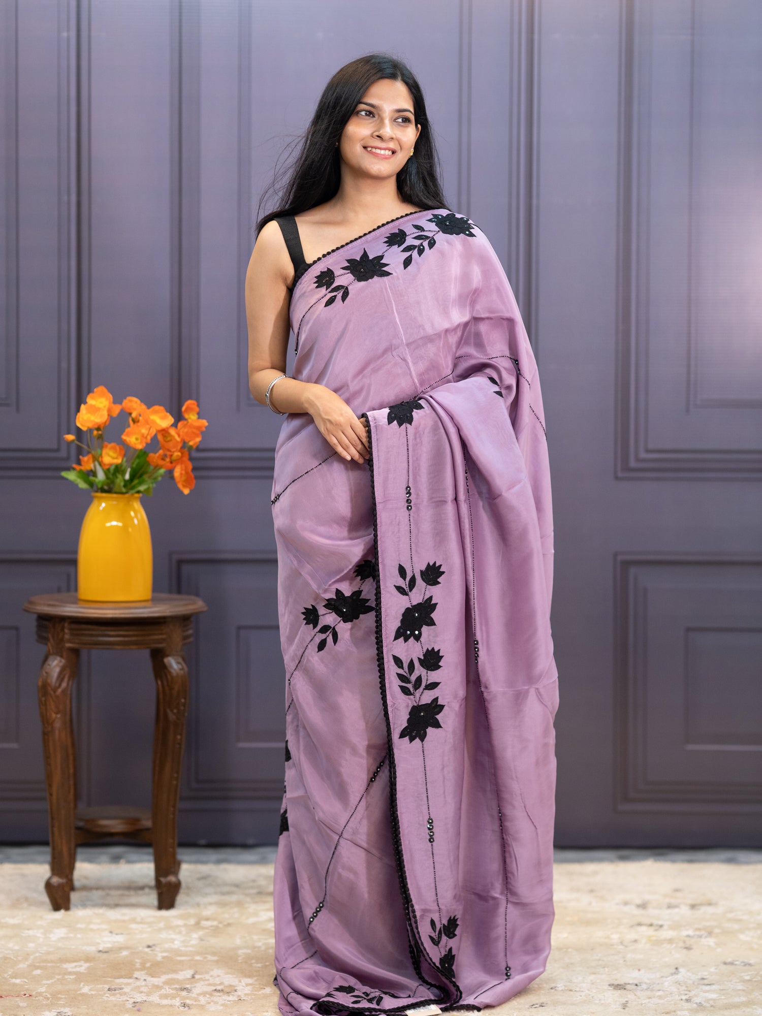 Russian Crepe Saree With Kardhana Work Lace Border - Lavender