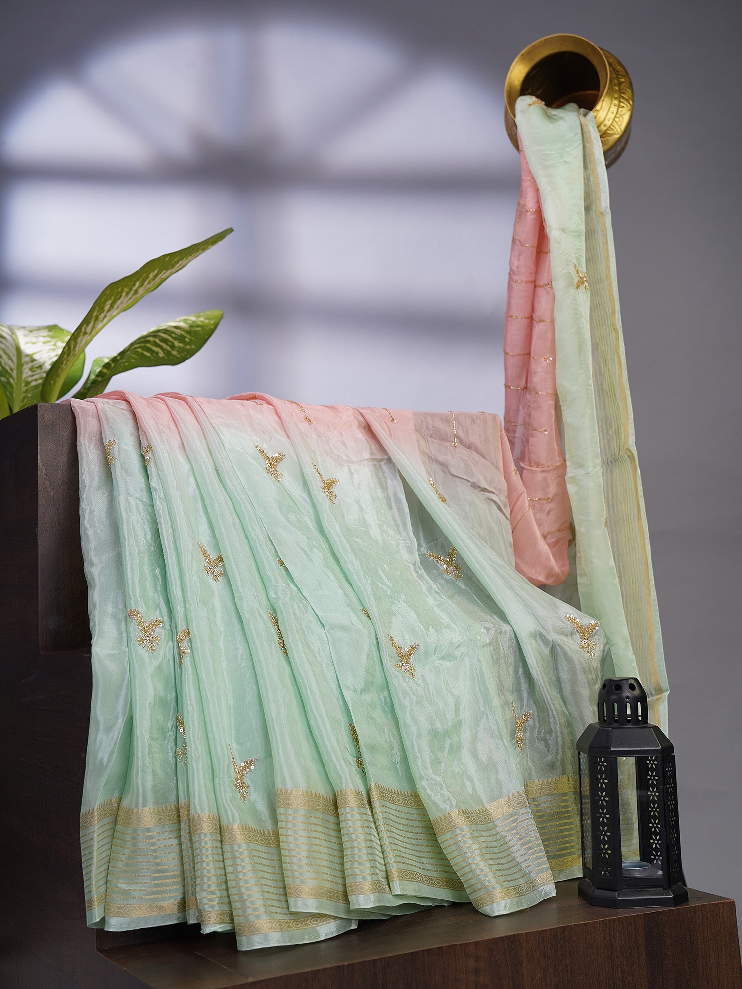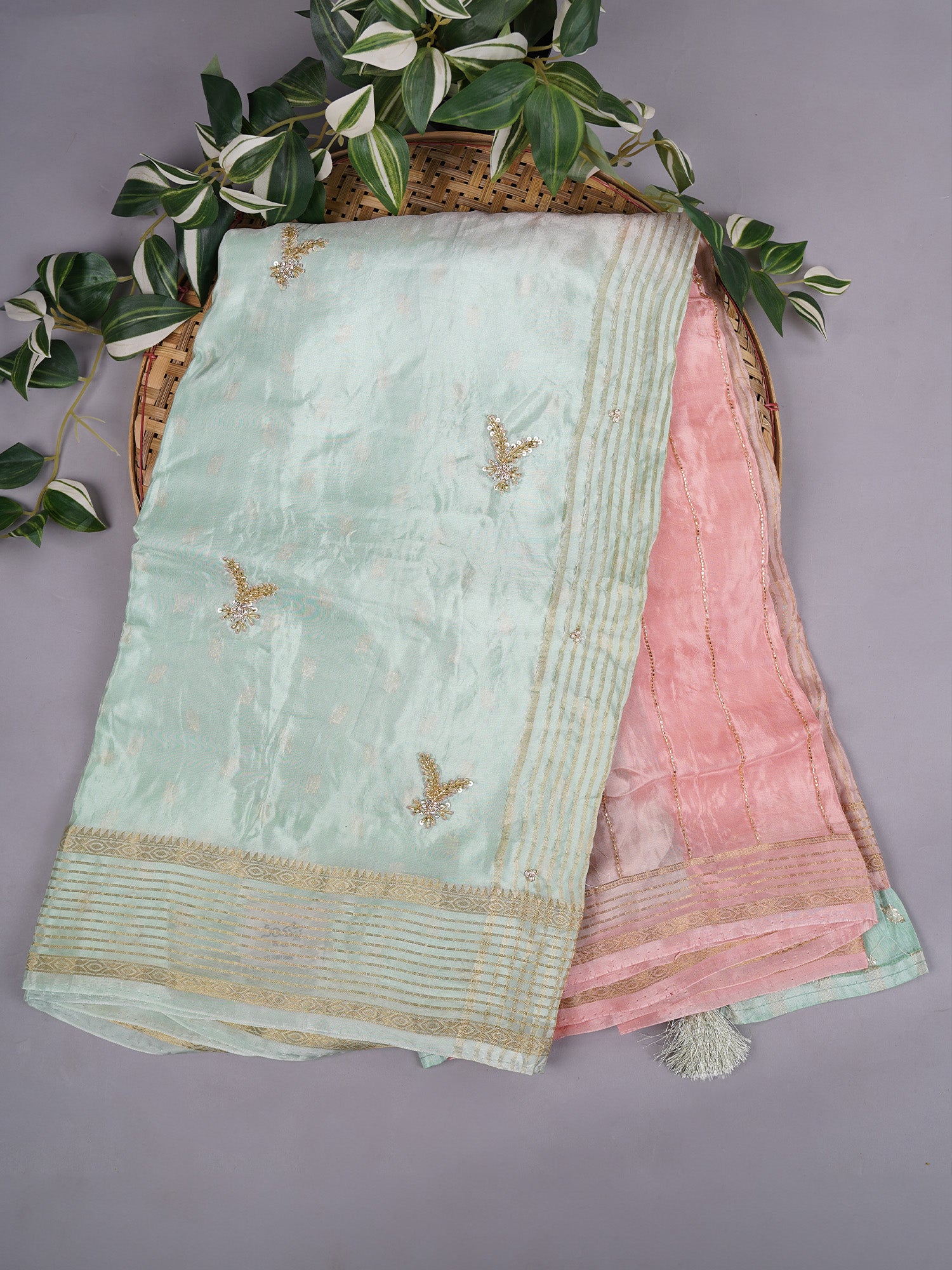 Russian Crepe with Kardhana Sequence Butties and Banaras Border - Pista Green