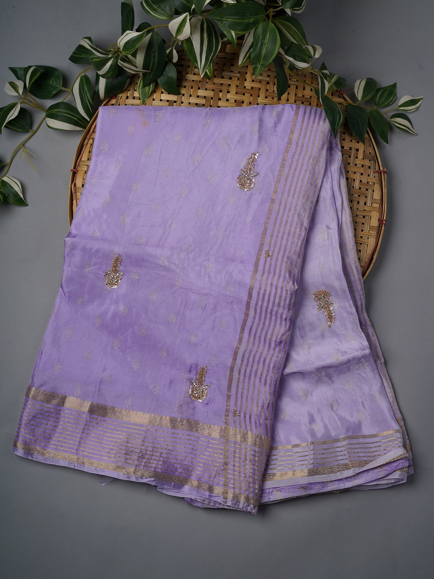 Russian Crepe With Kardhana Sequence Butties And Banaras Border - Lavender