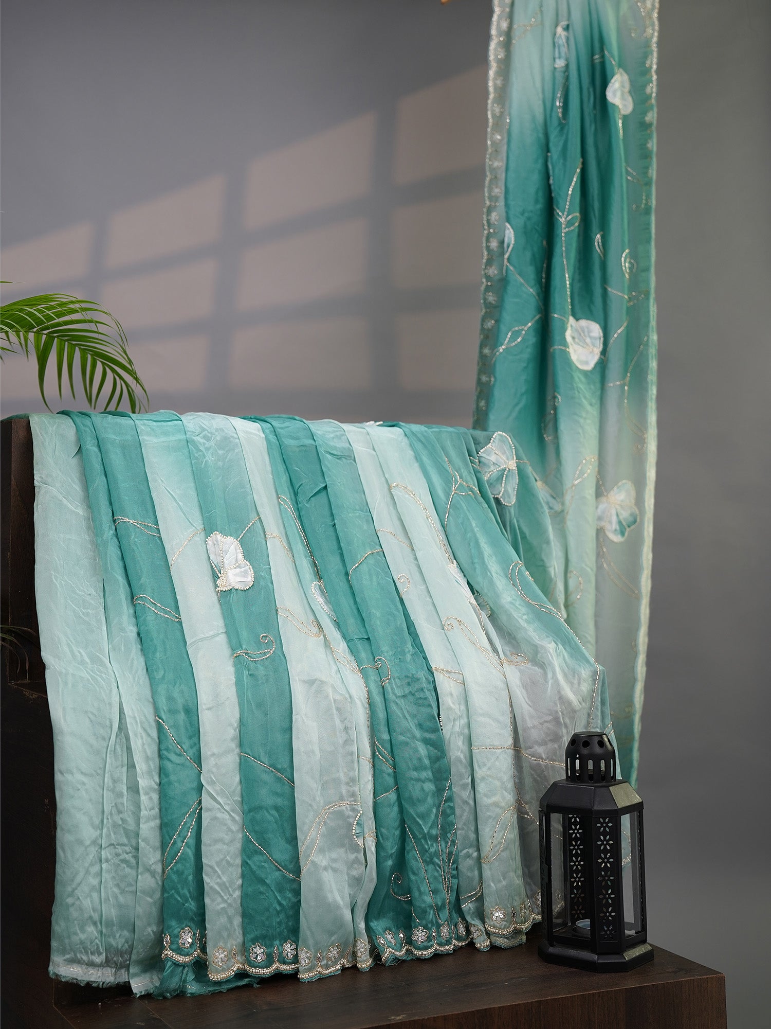 Russian Silk Shibori Saree Applique & Zardosi work and Scallop Border with Sequence Work