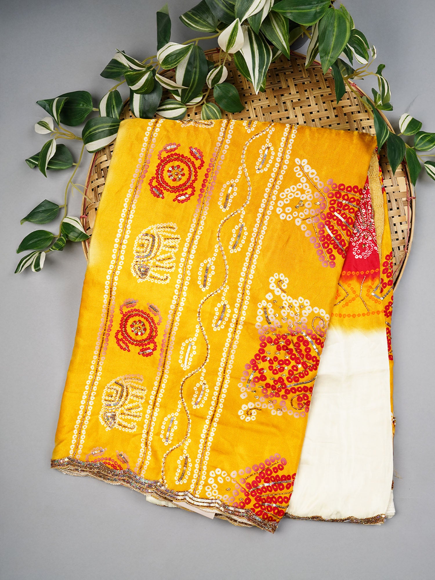 Drape yourself in sunshine with this stunning yellow satin silk saree that's pure magic! Intricate kardhana sequence work dances across the fabric, catching light with every movement, while the elegant scallop border adds a touch of refined sophistication. Perfect for celebrations, weddings, or whenever you want to turn heads, this saree combines traditional craftsmanship with a contemporary flair. The luxurious satin silk glides beautifully, ensuring you look and feel absolutely radiant. Make a statement that's both timeless and unforgettable.