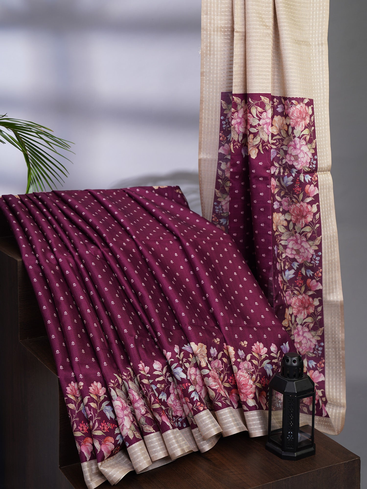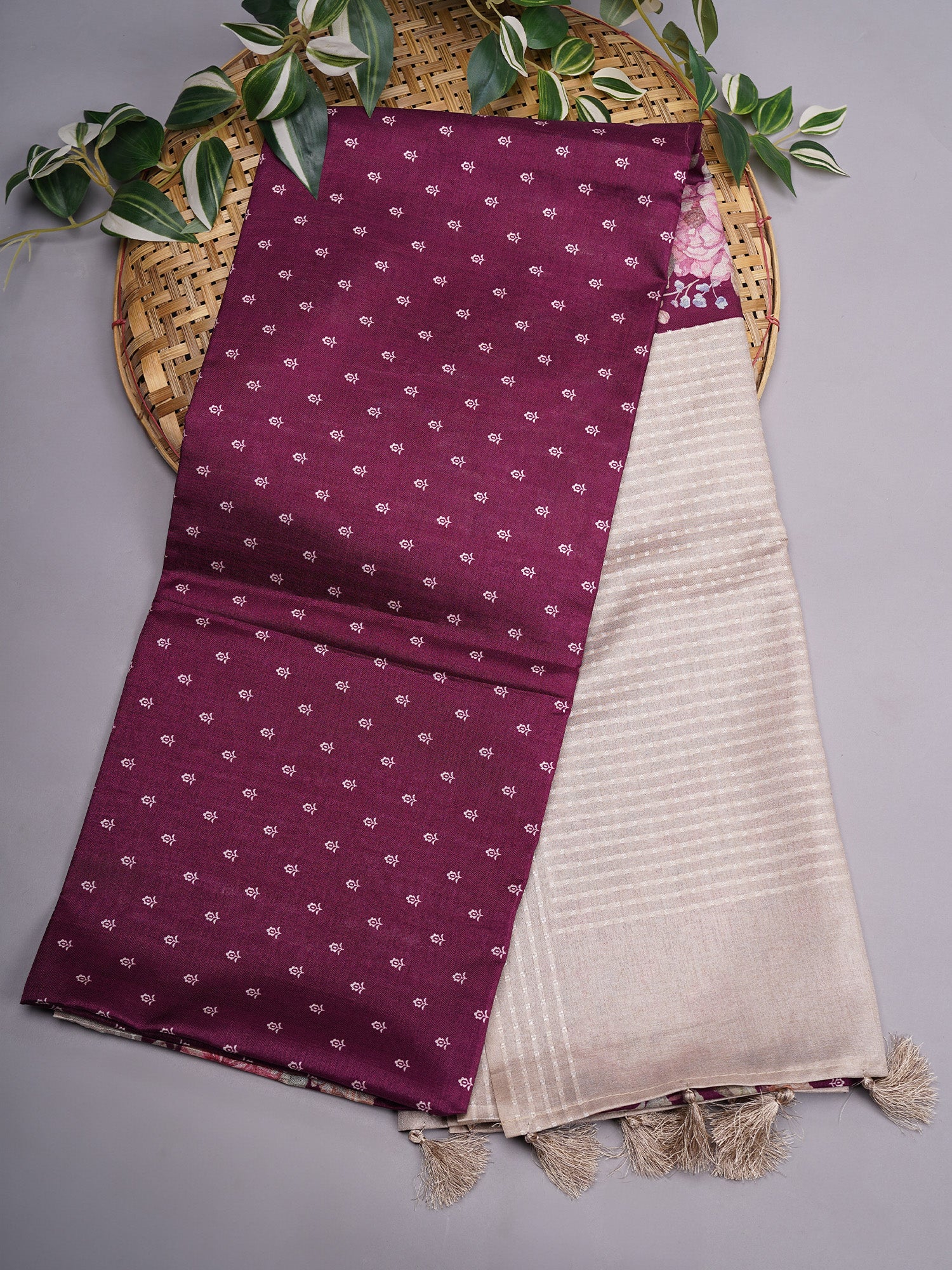 Experience elegance with this Semi Tusser saree featuring a delicate floral contrast pallu and intricate weaving checks. Crafted from premium semi Tusser fabric, it combines durability with a refined texture. The floral pallu adds a sophisticated touch, while the weaving checks introduce subtle detail, making it ideal for both formal occasions and festive events. This saree offers comfort without compromising on style, reflecting traditional craftsmanship with a contemporary appeal. Perfect for those who appreciate quality and timeless design.