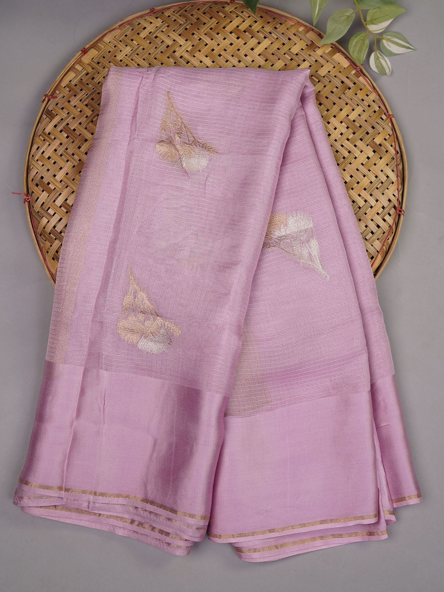 Silk Kota All Over golden silver Zari Butties with Satin Border