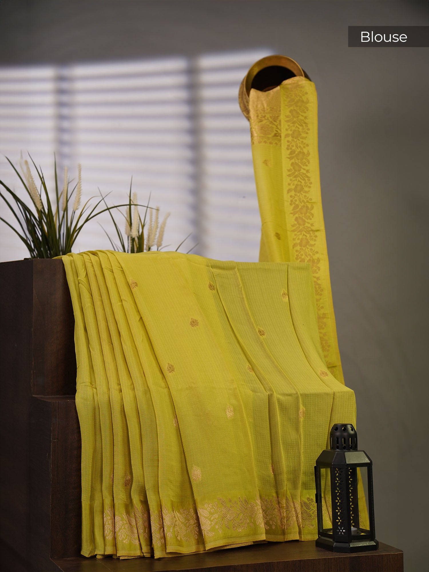 Silk Kota Allover Golden Zari Buttis - Yellow
