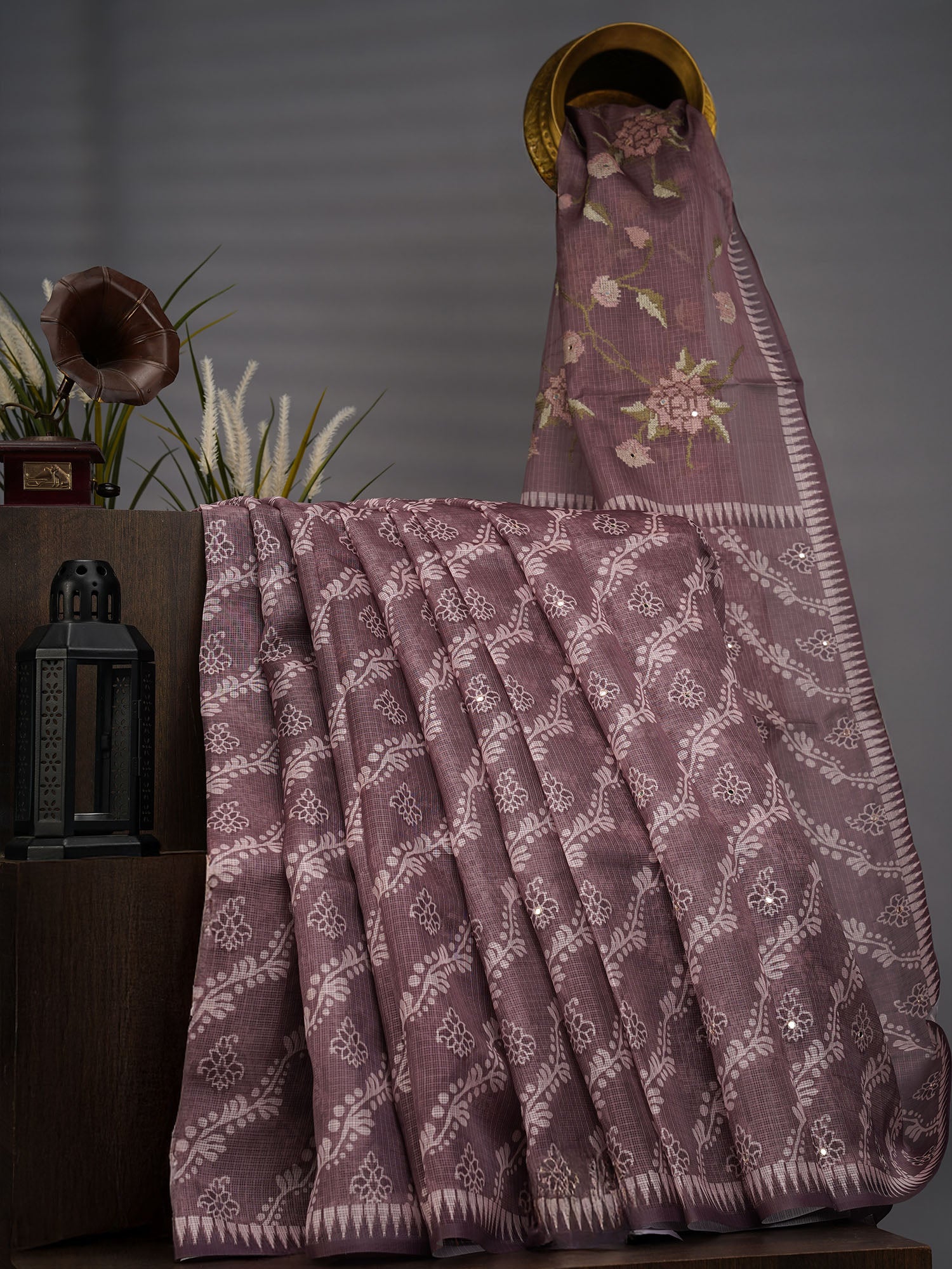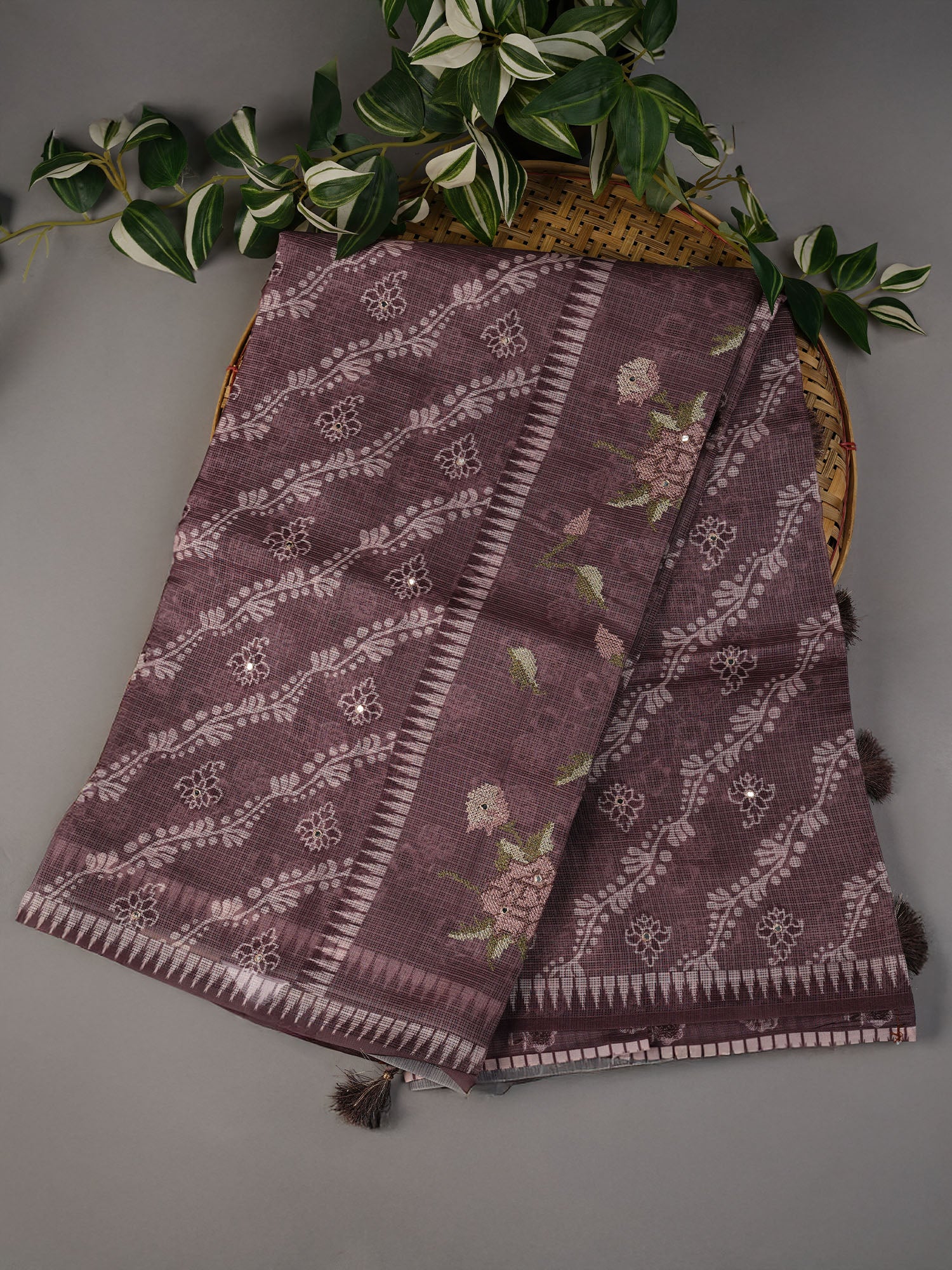 Elevate your ethnic wardrobe with this exquisite Silk Kota saree, featuring the timeless Lehariya design in rich brown tones. The intricate mirror work adds a luminous dimension, catching light with every movement for an enchanting shimmer. Crafted from premium silk Kota fabric, this saree offers a perfect balance of elegance and comfort, ideal for festive occasions, celebrations, and special events. The traditional diagonal stripe pattern combined with contemporary mirror embellishments creates a sophisticated aesthetic that transcends seasons. A versatile choice for those who appreciate refined craftsmanship and authentic Indian textiles.