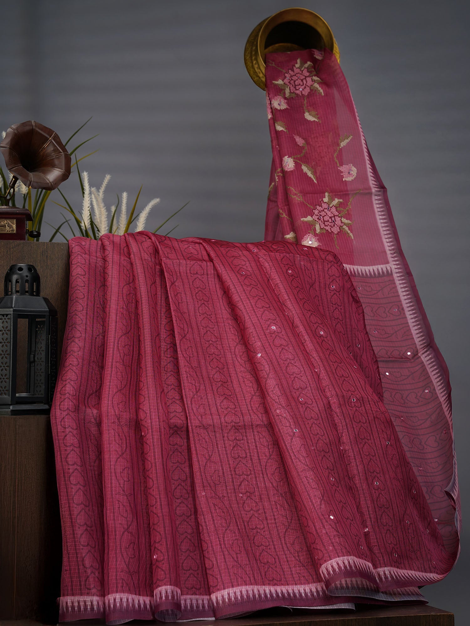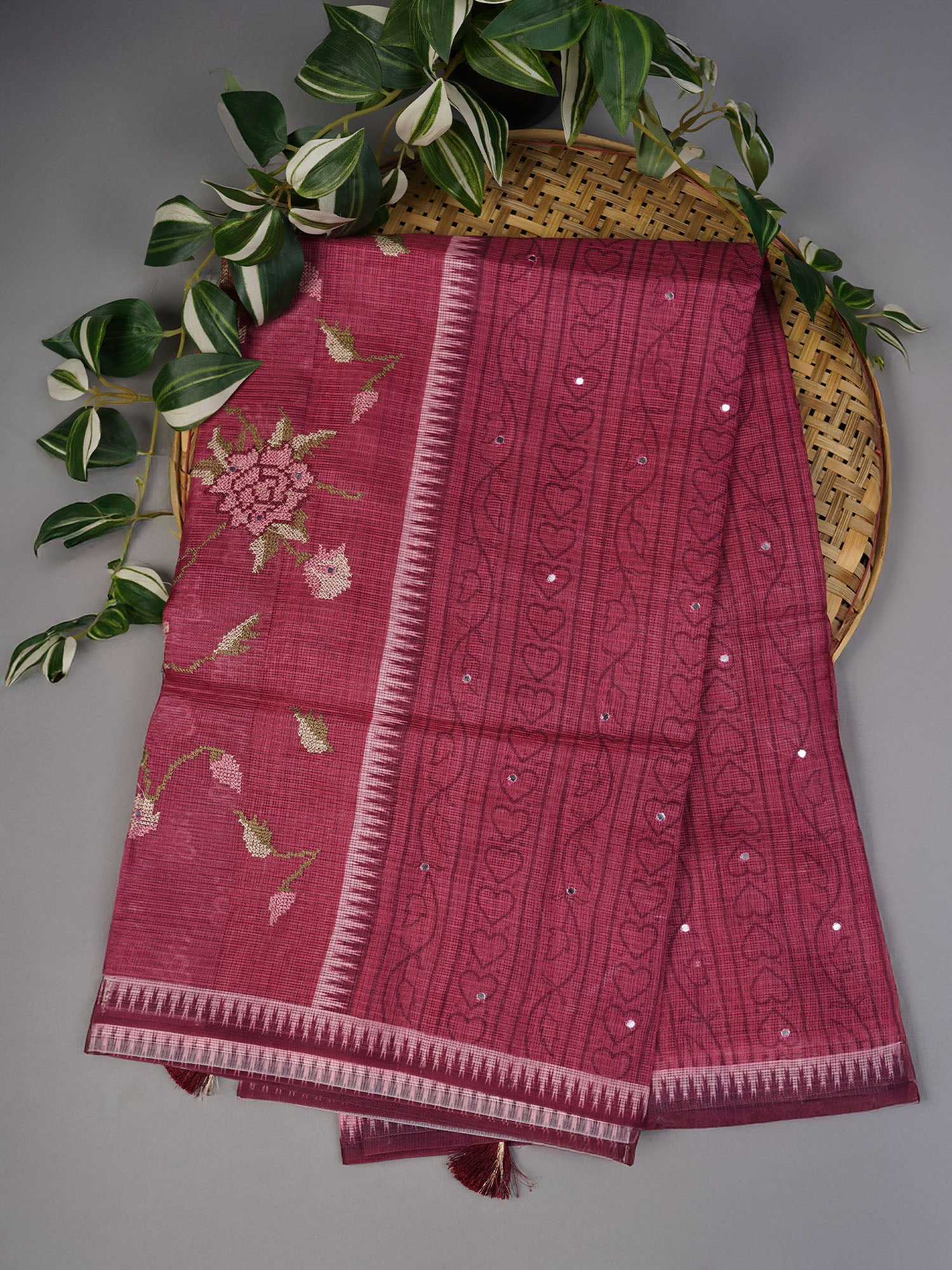 Elevate your ethnic wardrobe with this exquisite Silk Kota saree, featuring the timeless Lehariya design in a striking magenta hue. The lightweight silk Kota fabric drapes beautifully while maintaining its structured elegance, making it ideal for both festive occasions and everyday celebrations. Intricate mirror work embellishments add a touch of glamour and traditional craftsmanship, catching light with every movement. The vibrant magenta shade complements various skin tones and pairs effortlessly with classic jewelry. Perfect for weddings, festivals, or special gatherings, this saree combines comfort with sophisticated style.