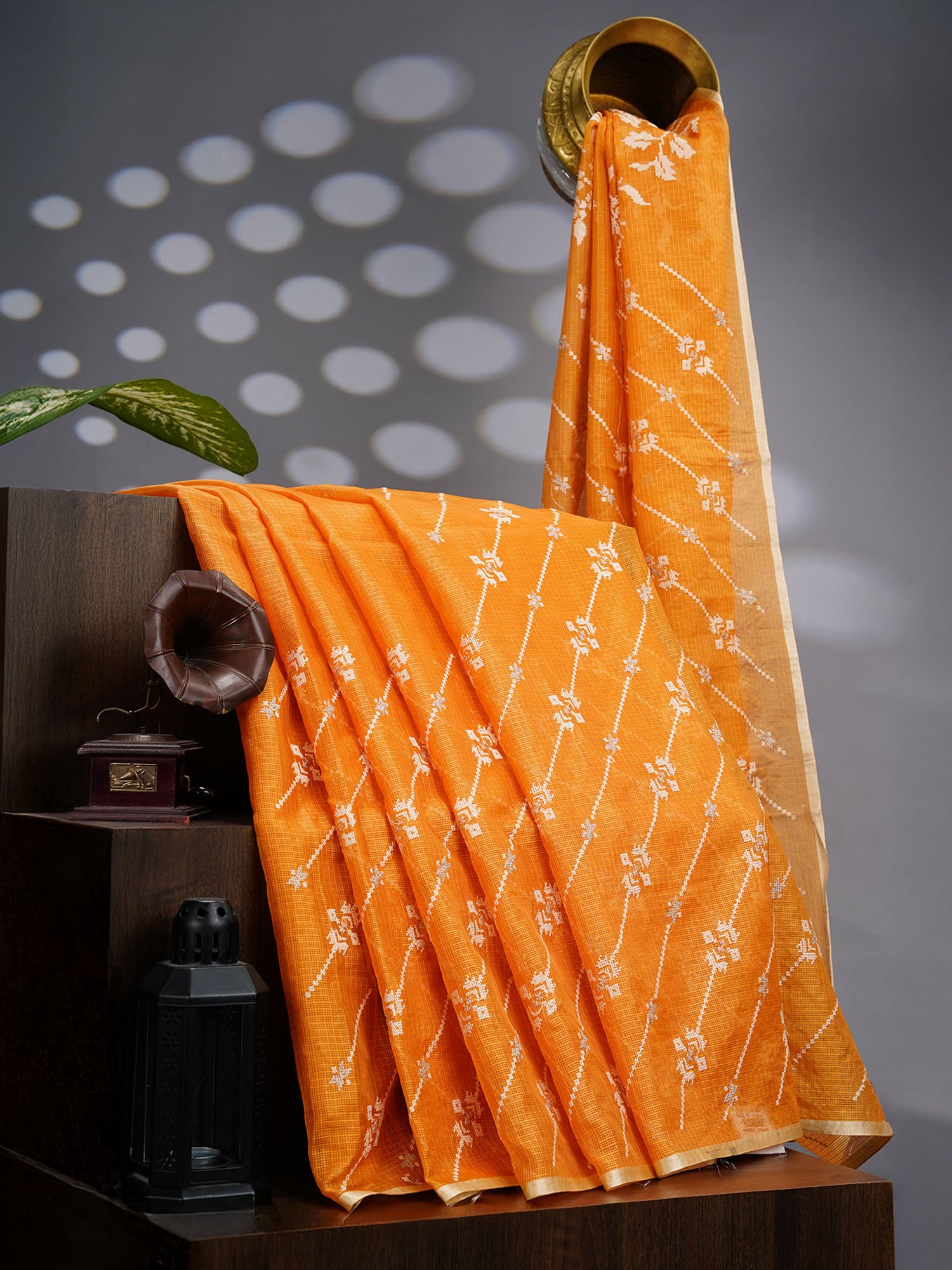 Drape yourself in elegance with this stunning Silk Kota saree that's pure magic! Featuring intricate allover thread embroidery that catches...