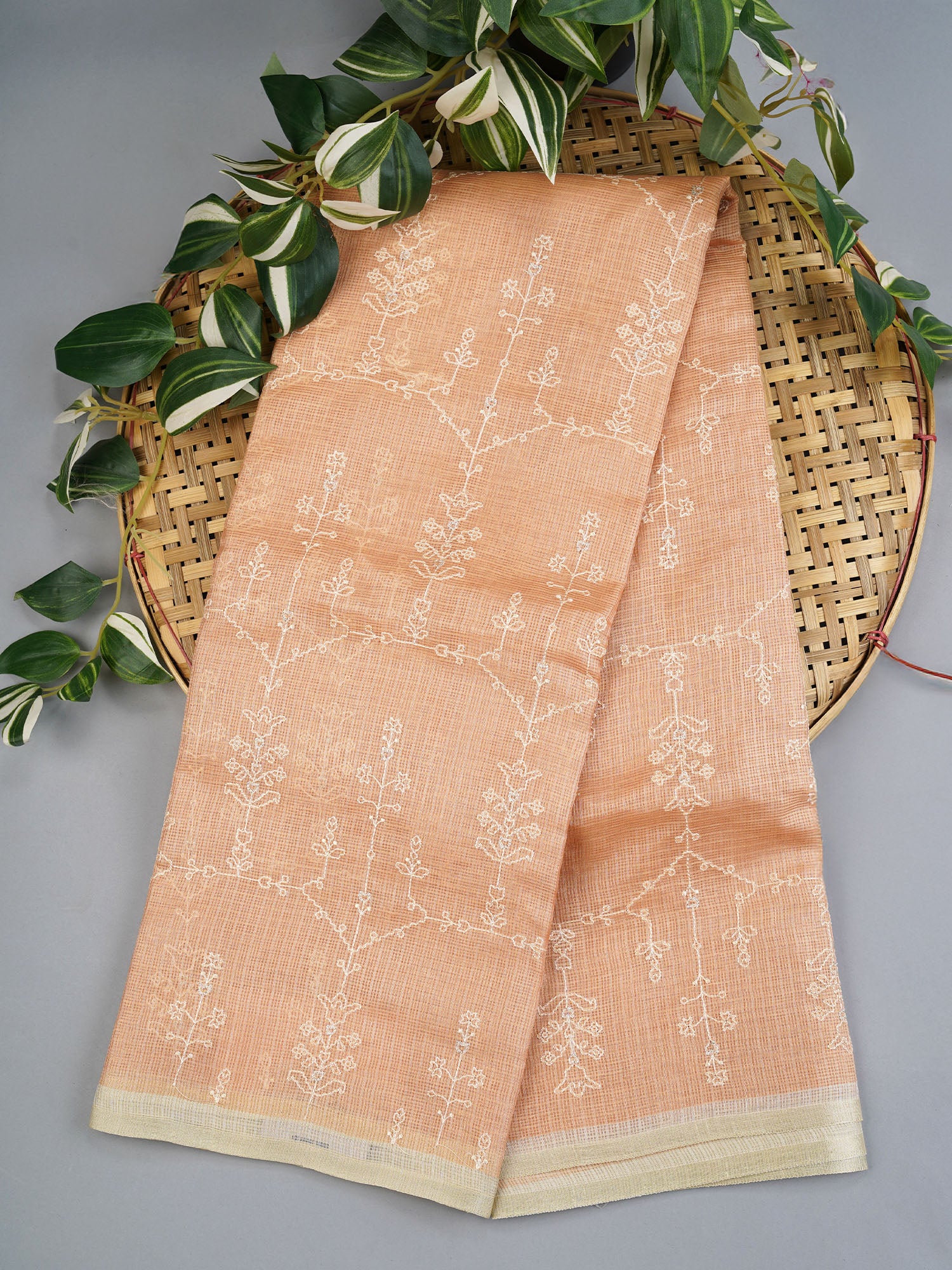 Elevate your saree collection with this stunning Silk Kota in warm beige, where delicate thread work dances across every inch of fabric. The lightweight silk drape pairs perfectly with intricate embroidery that catches light beautifully, making it ideal for weddings, festivals, or those moments when you want to feel effortlessly elegant. Versatile enough for day events yet sophisticated enough for evening celebrations, this piece is a timeless investment that deserves a place in every saree lover's wardrobe.
