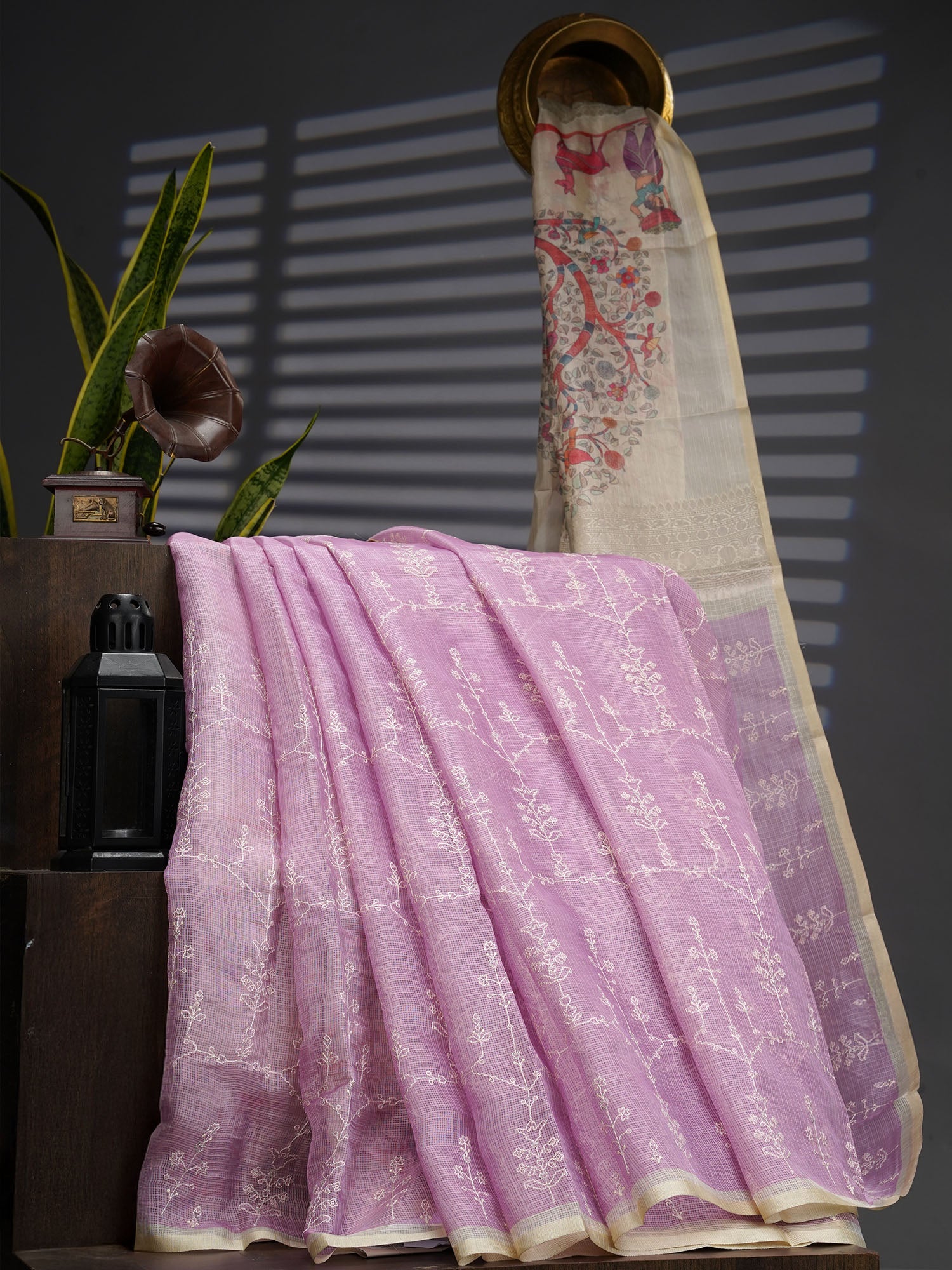 Drape yourself in dreamy lavender elegance with this stunning Silk Kota saree! Featuring intricate allover thread work that catches light beautifully, this piece is a celebration of traditional craftsmanship with a modern twist. The luxurious silk fabric offers a graceful drape and comfortable wear, making it perfect for weddings, festivals, or special occasions. Each thread detail adds depth and dimension, ensuring you stand out with understated sophistication. A timeless investment that brings joy to your ethnic wardrobe!