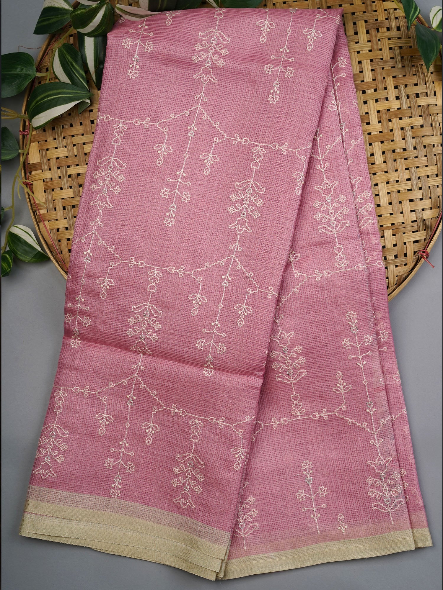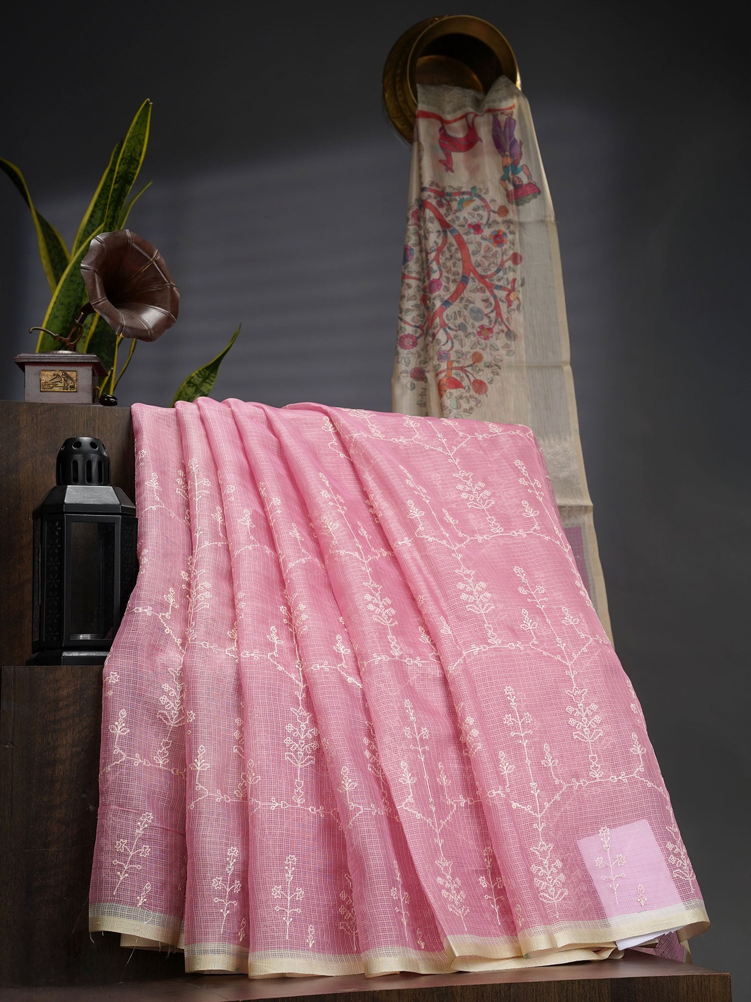 Silk Kota Saree With Allover Thread Work - Onion Pink
