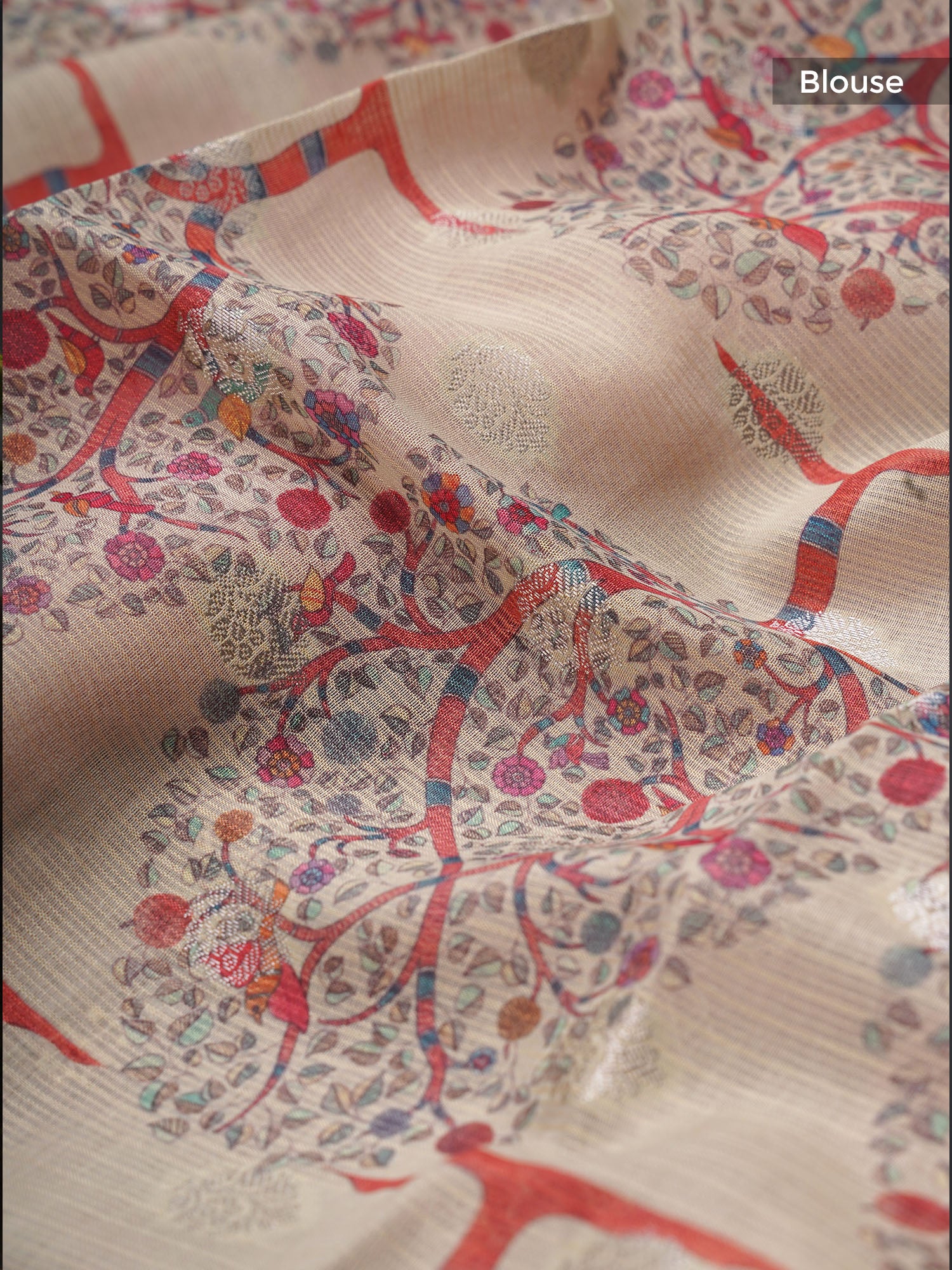Drape yourself in pure elegance with this stunning Silk Kota Saree in a gorgeous onion pink shade. Featuring intricate allover...