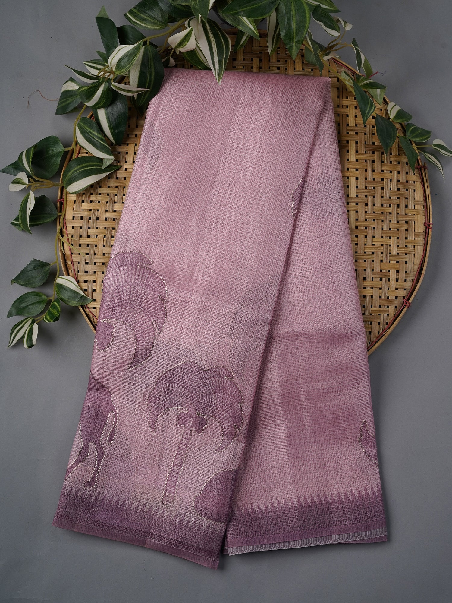 Silk Kota Saree With Ari Work Border - Onion Pink
