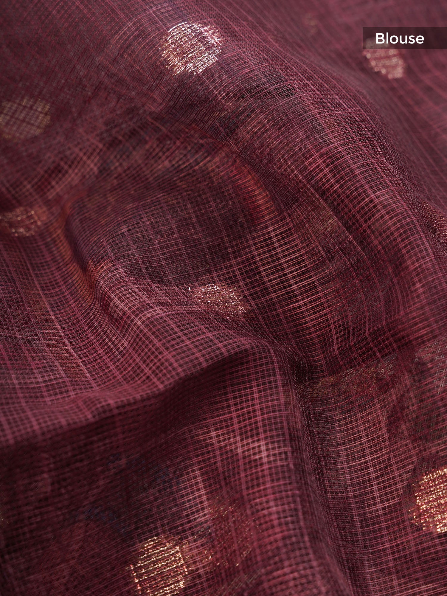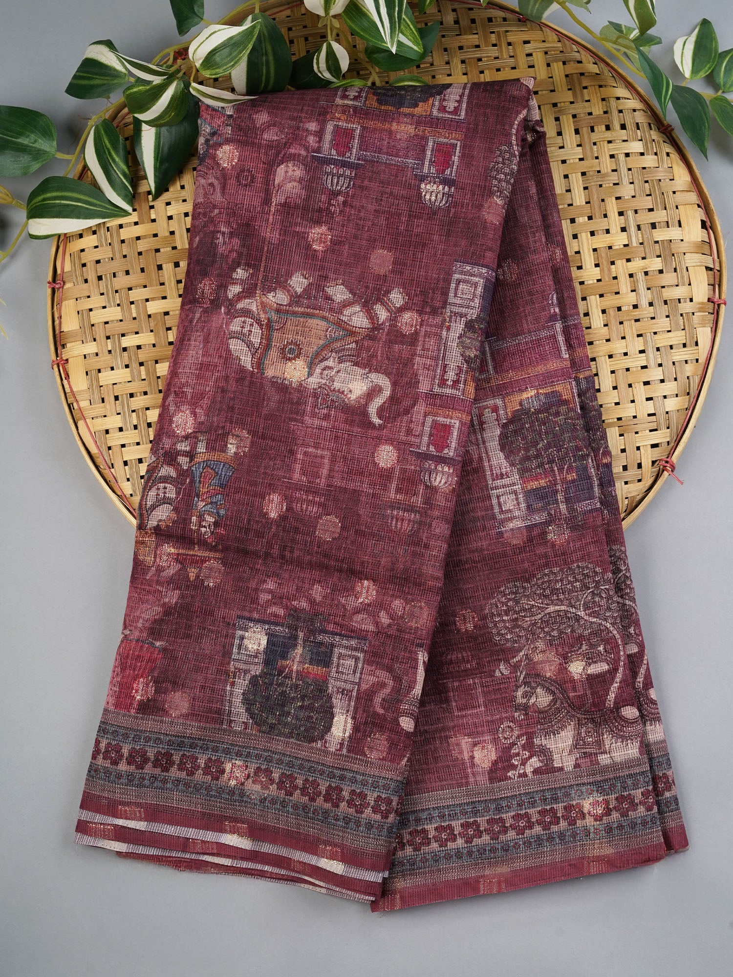 Silk Kota Saree With Digital Print And Gold Weaving Butties - Maroon