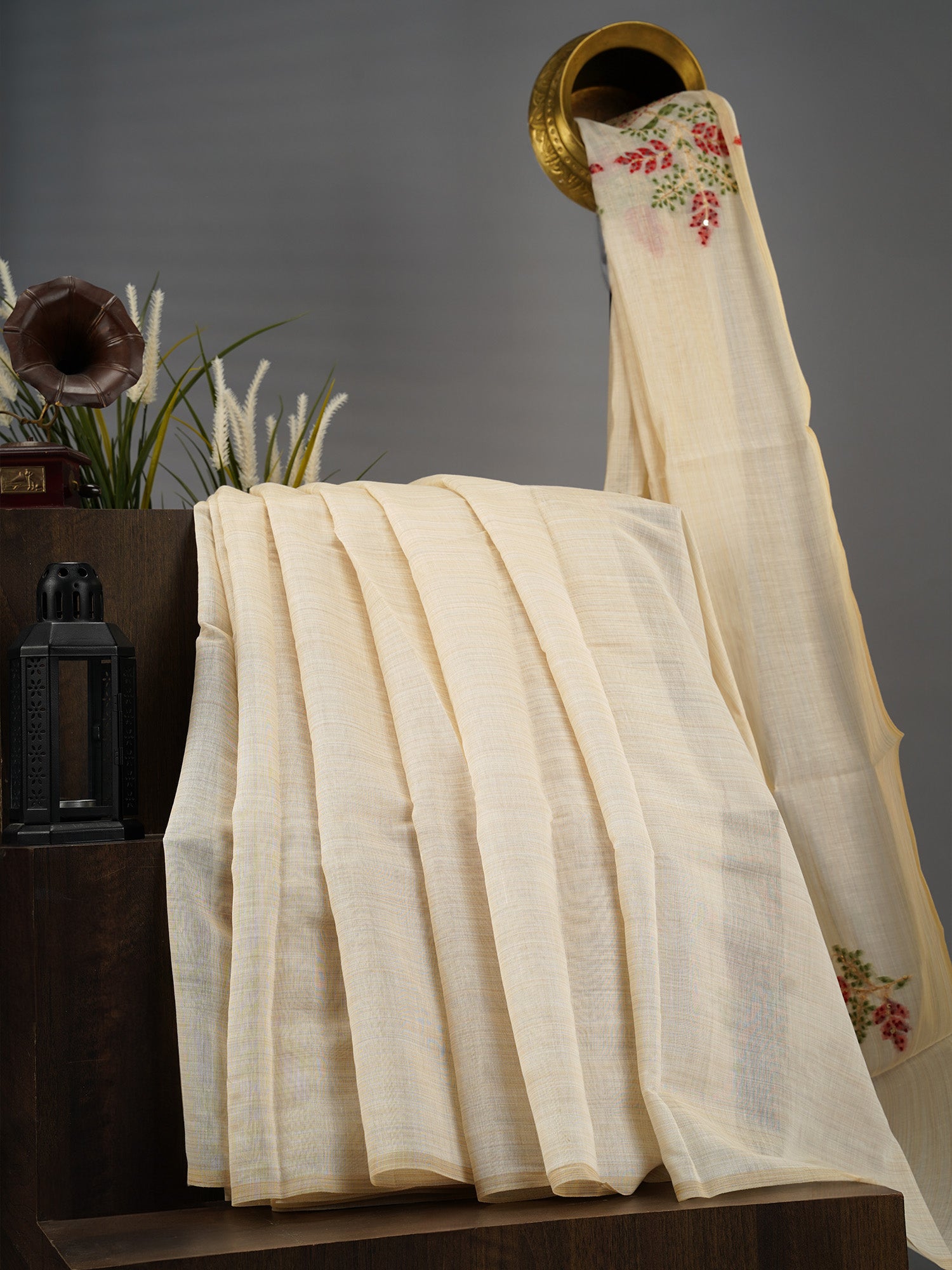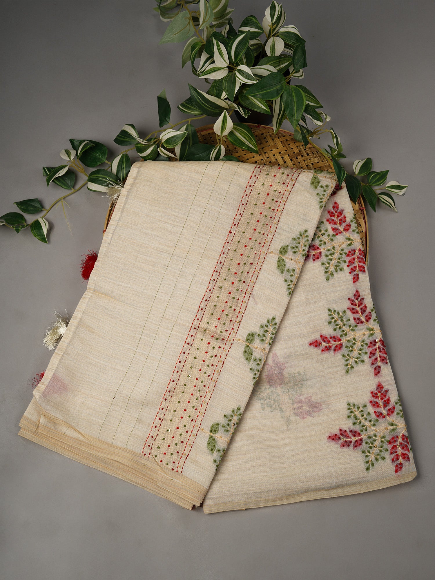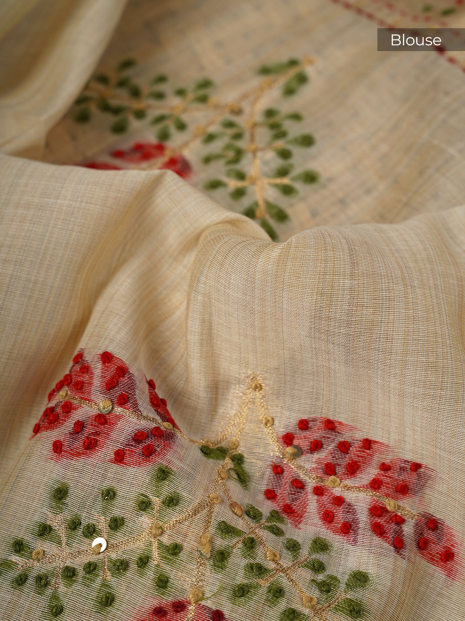 Semi Tussar Kantha With Knot Work in Off White showcases refined craftsmanship with delicate knot embroidery on premium tussar fabric....