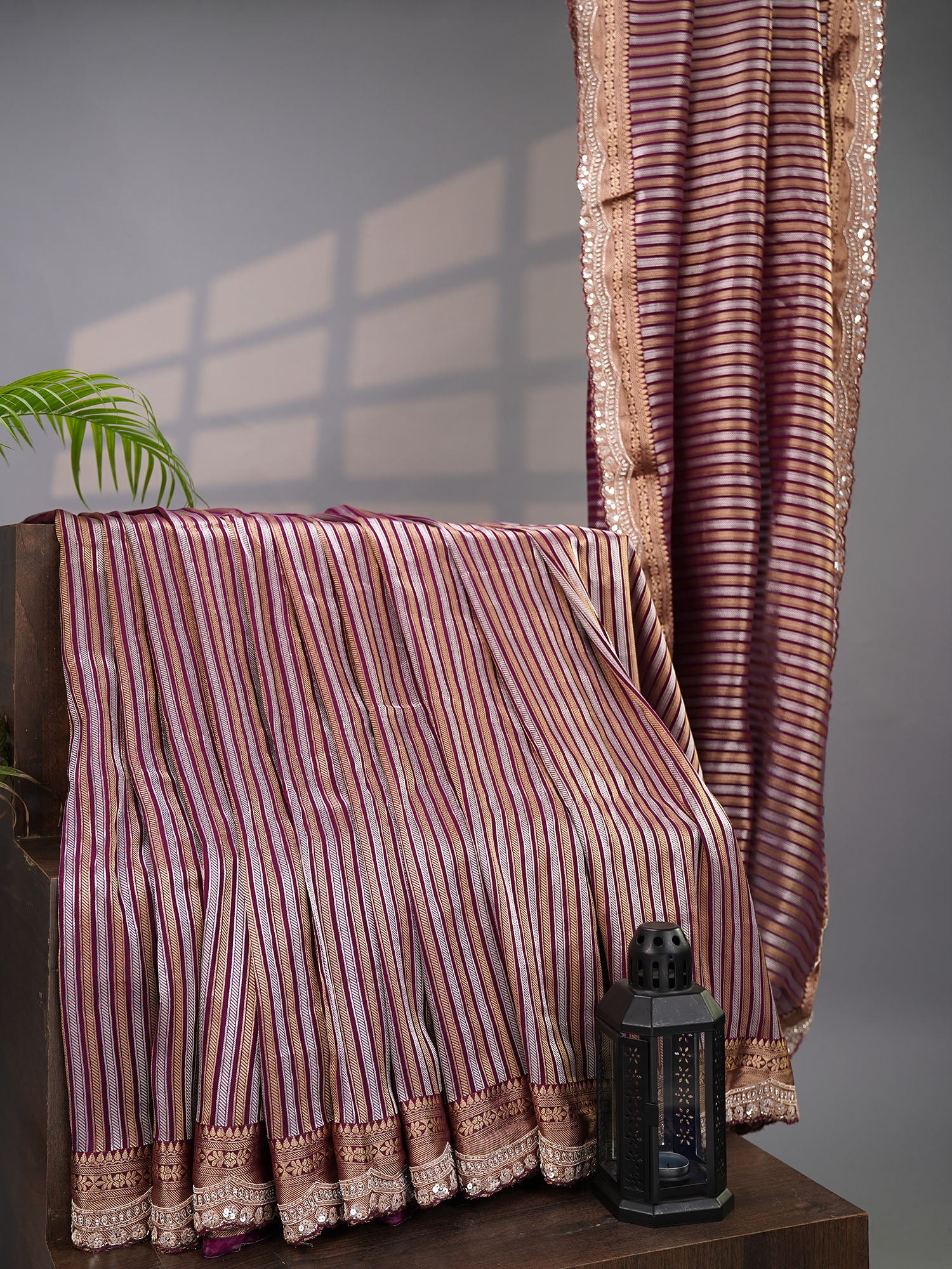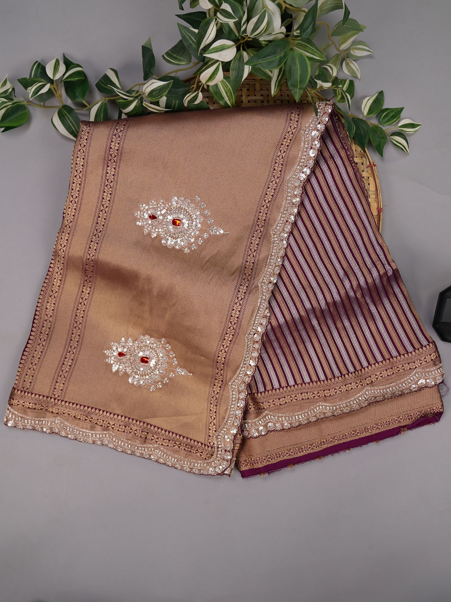 Soft Banaras Silk Saree Embroidery Border Zardosi Kadhana & Sequence Work