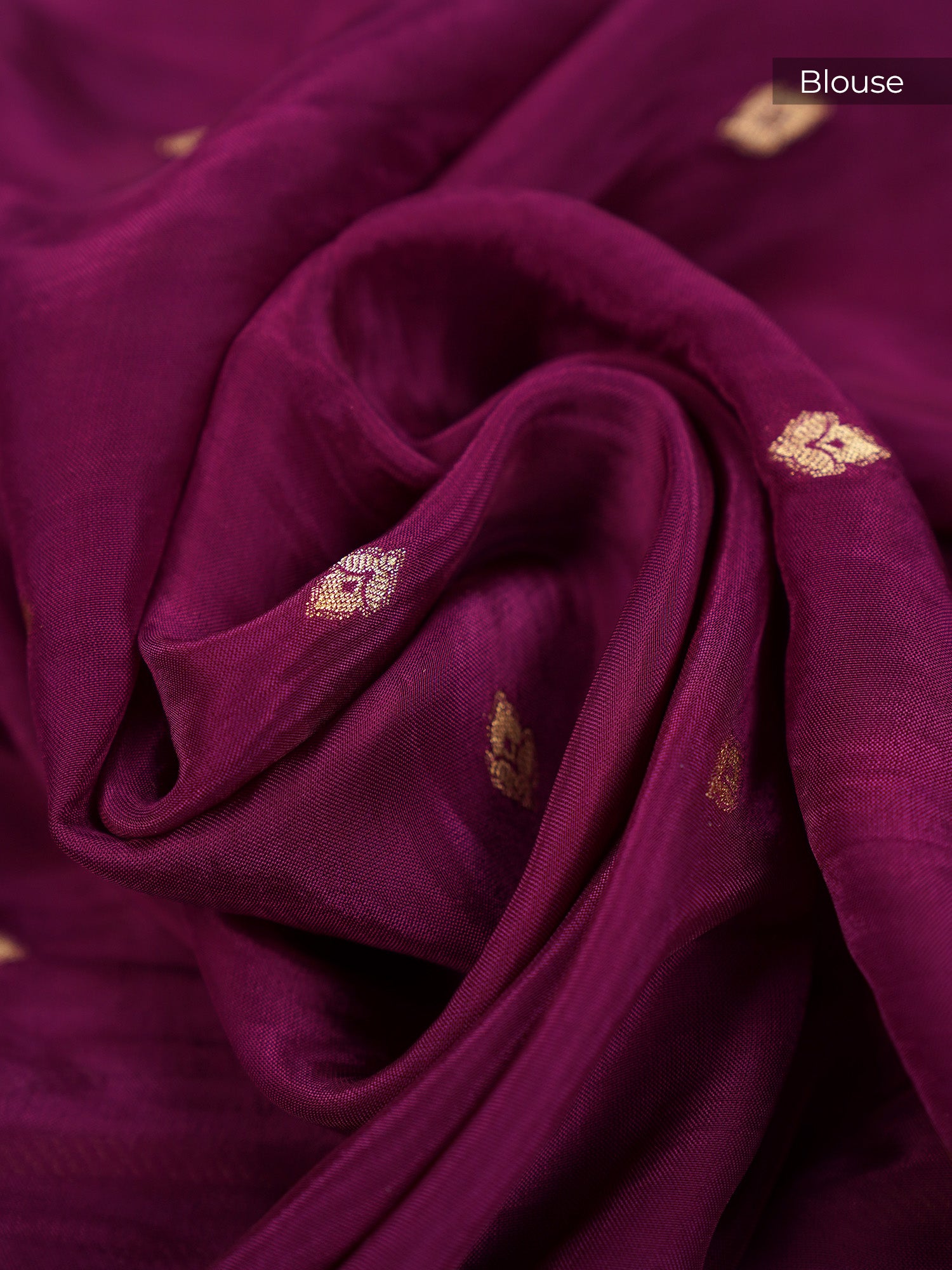 Experience timeless elegance with this Soft Banaras Silk Saree, featuring intricate embroidery along the border enhanced by traditional Zardosi Kadhana...