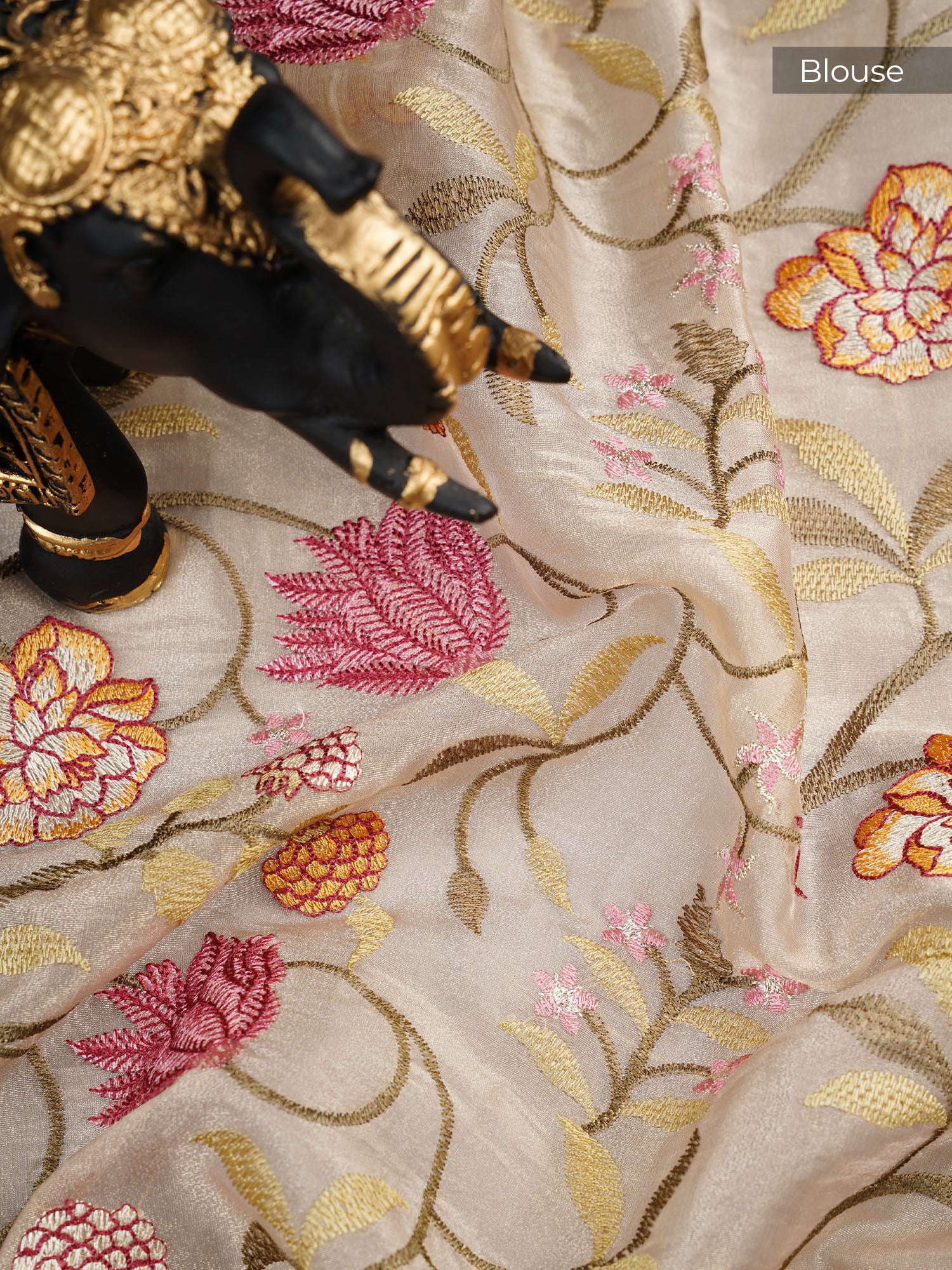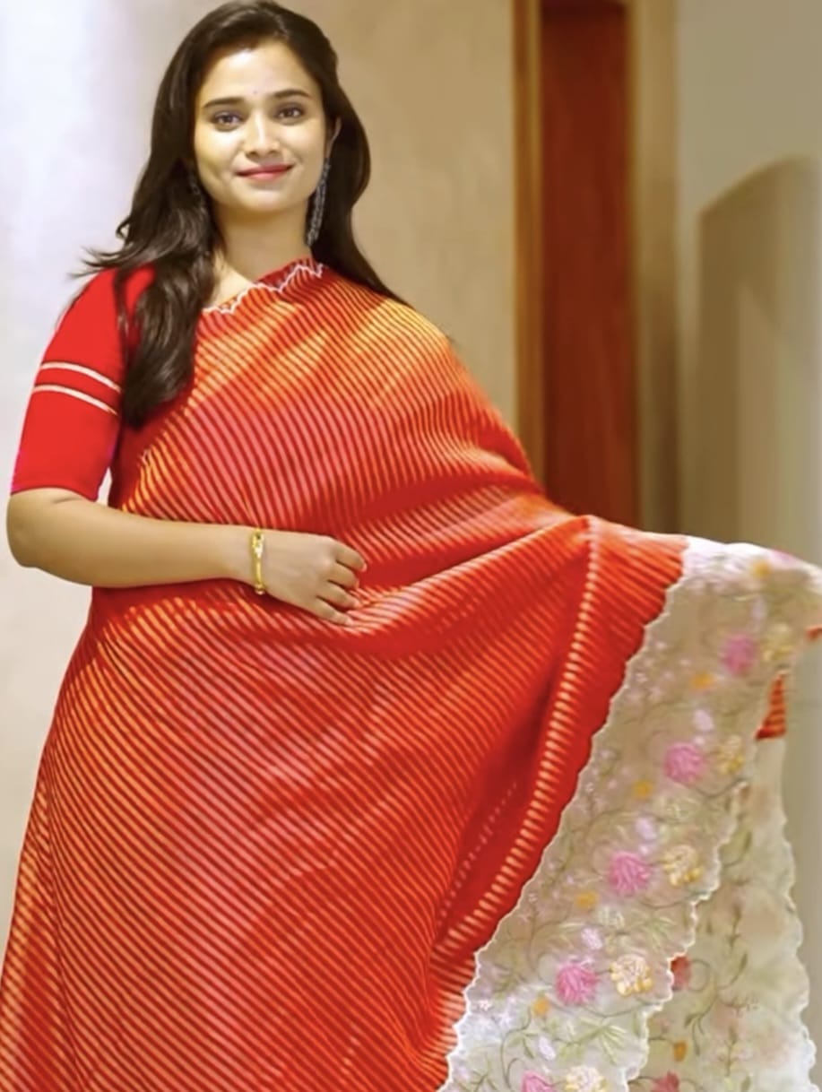 Soft Organza Saree and Golden Lines and Thread Work scallop border - Maroon