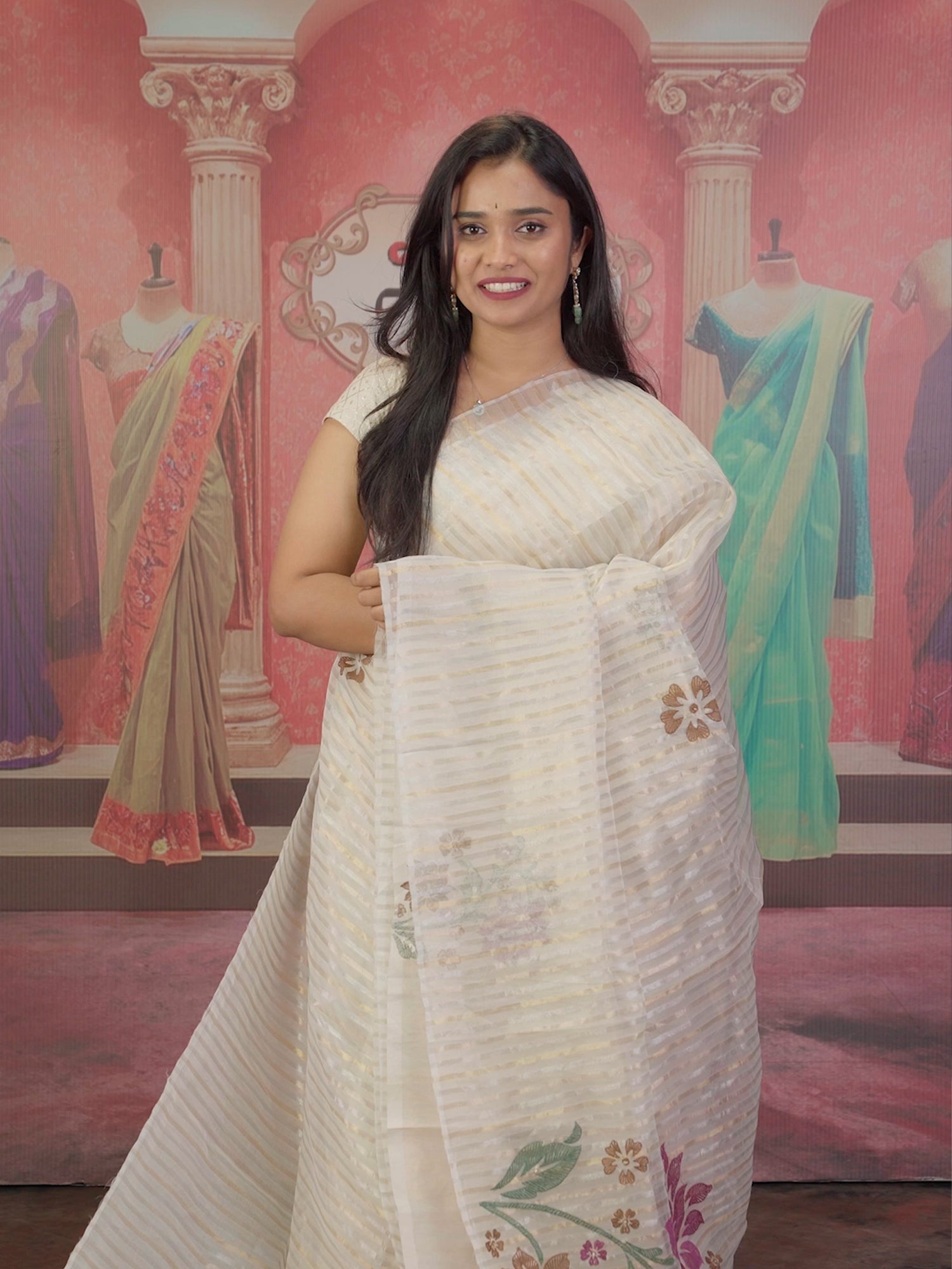 Drape yourself in ethereal elegance with this stunning soft organza saree, where delicate gold and silver lines dance across the fabric like threads of moonlight. The intricate embroidery threadwork adds a touch of artisanal charm, creating dimension and visual interest that catches the eye from every angle. Perfect for celebrations, weddings, or when you want to feel absolutely radiant, this saree combines traditional craftsmanship with a luxuriously soft touch. The shimmering metallic accents elevate your look effortlessly, making it a versatile choice for both formal occasions and festive gatherings.