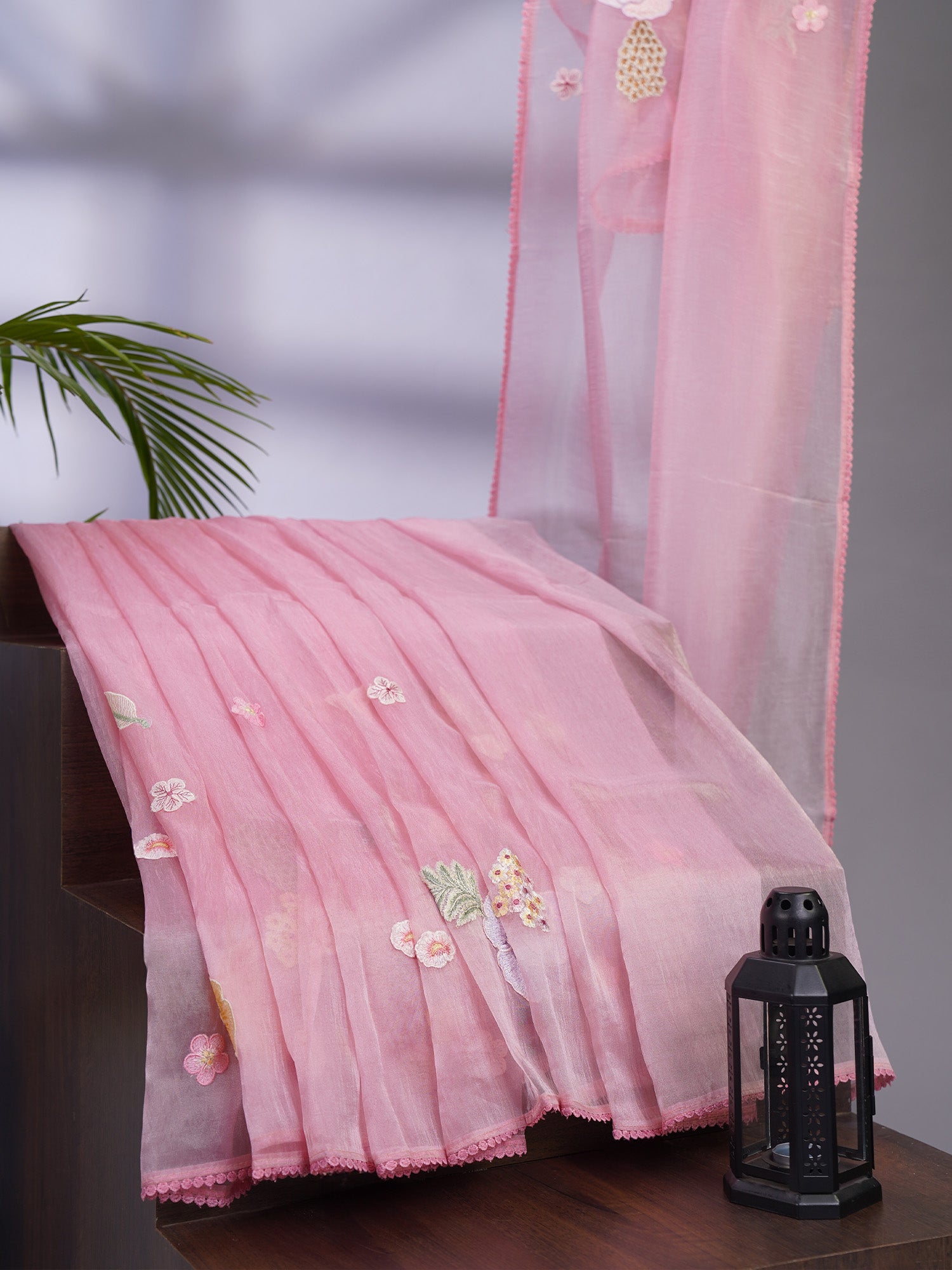 Experience elegance with this Soft Organza Silk Saree, crafted to offer a lightweight and breathable drape. Its delicate applique work lace border enhances the saree’s sophisticated appeal, perfect for special occasions. The blend of soft organza and silk ensures a luxurious feel while maintaining durability. Ideal for those seeking a refined, graceful look, this saree combines traditional craftsmanship with contemporary style.