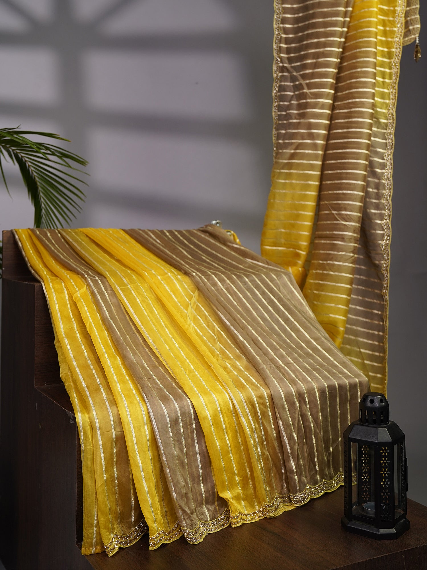 Soft Organza Silk with Zari Weaving Lines and Handwork Border
