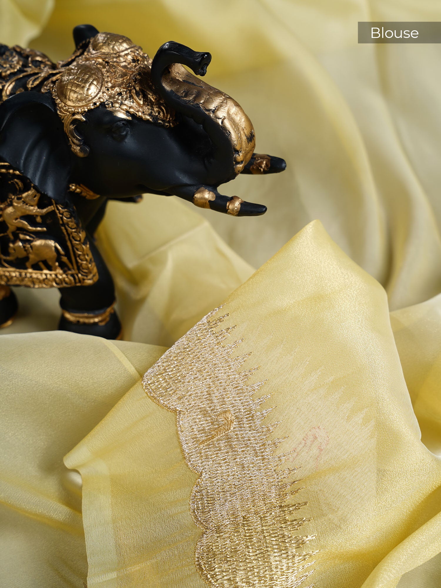 Brighten your wardrobe with this stunning lemon yellow organza saree that's as light as air and twice as elegant. Delicate...